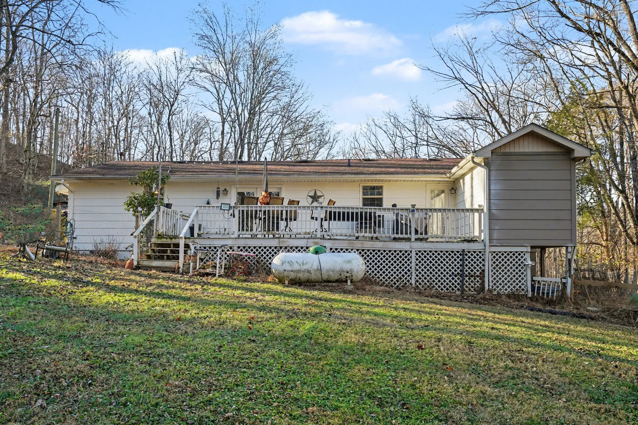 Tucked away on 8.44 acres of scenic, wooded land, this one-level home offers the privacy and peaceful setting so many are searching for. A long, winding driveway leads you home, creating a sense of arrival and seclusion that’s hard to find.\n