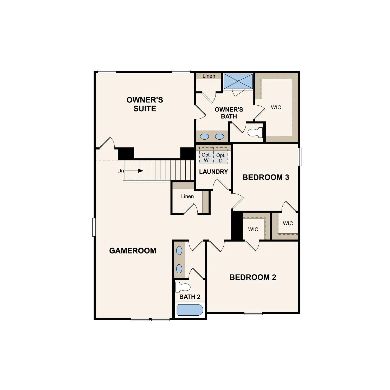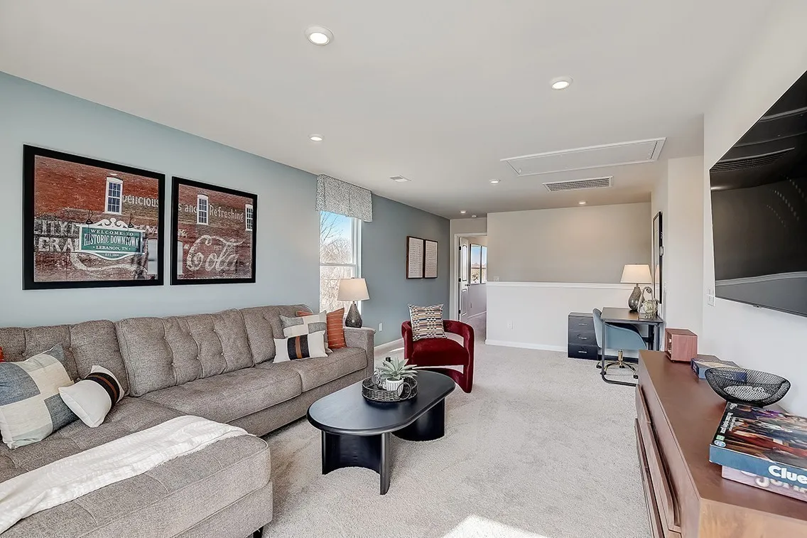 Upstairs, the iron spindle staircase leads to a generous loft—ideal for movie nights, gaming, or simply spreading out. Two secondary bedrooms each include walk-in closets, while the large owner’s suite offers a private escape with its own walk-in closet and spacious bath.