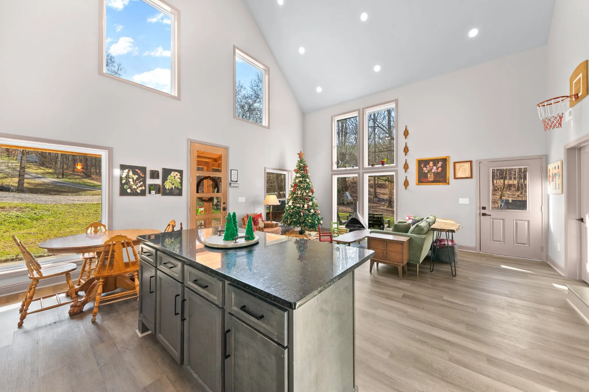 If you’ve been looking for something different in the best way, this is it. This modern barndominium-cottage style home blends clean design with a warm, welcoming feel, starting with a bright, open main living space featuring vaulted ceilings, fresh paint throughout the main area, and a standout mid-century fireplace that anchors the room.