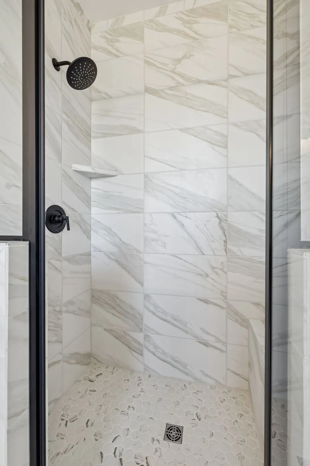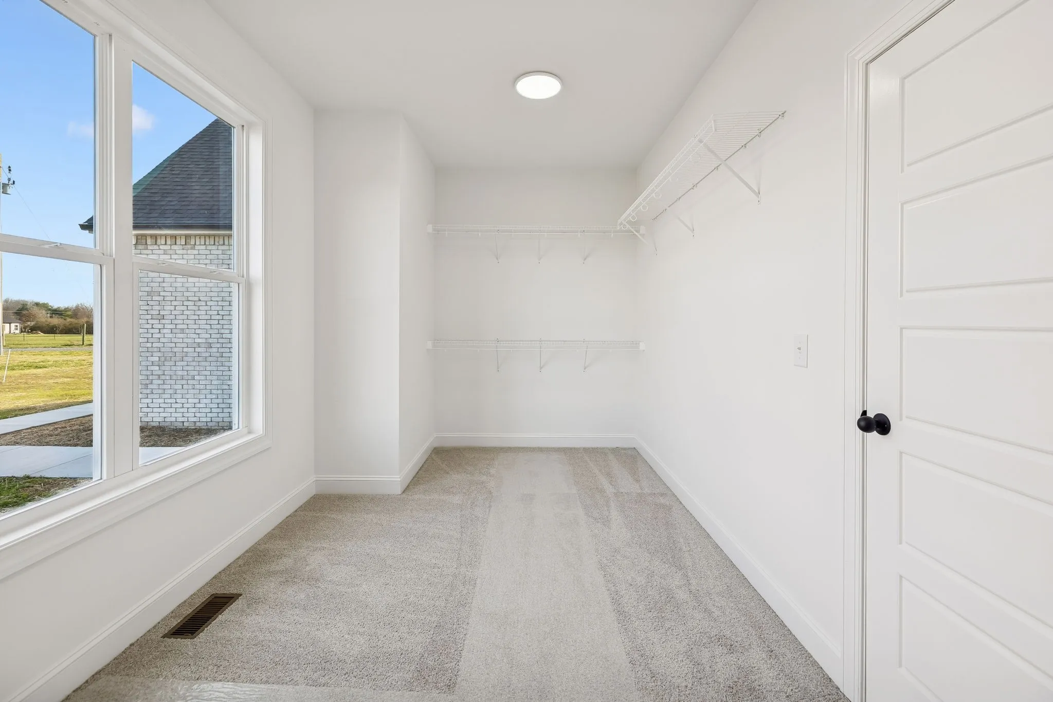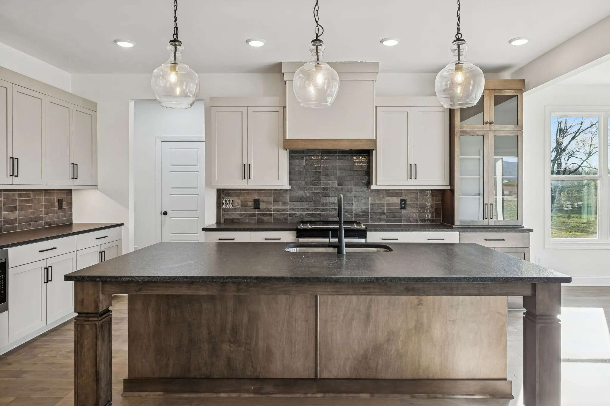 The main-level primary suite is a true retreat with a large bathroom that includes split vanities, a free-standing tub centered between them, a generous walk-in shower with a bench, and a massive 17’x8’ walk-in closet with its own bench seating. The home also boasts an oversized walk-in pantry, a spacious laundry room, and an oversized side-entry garage.
