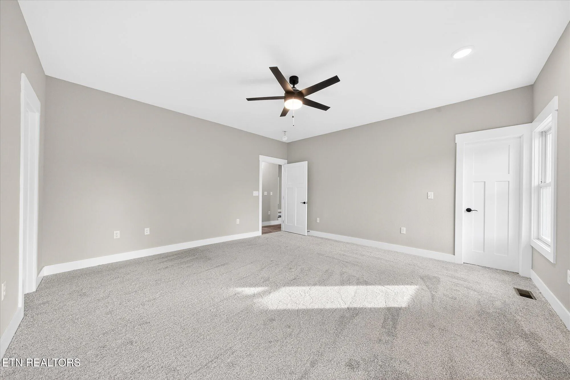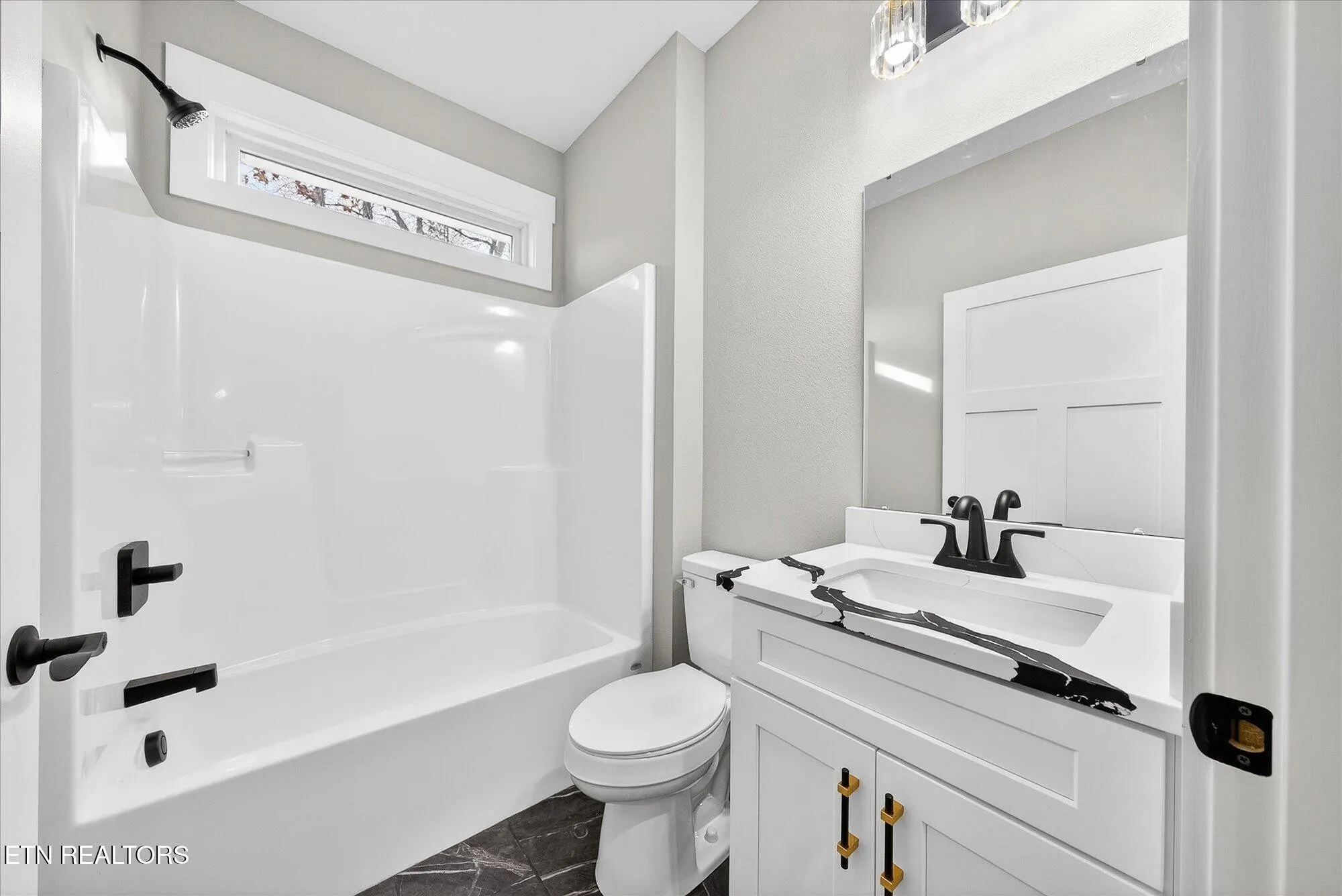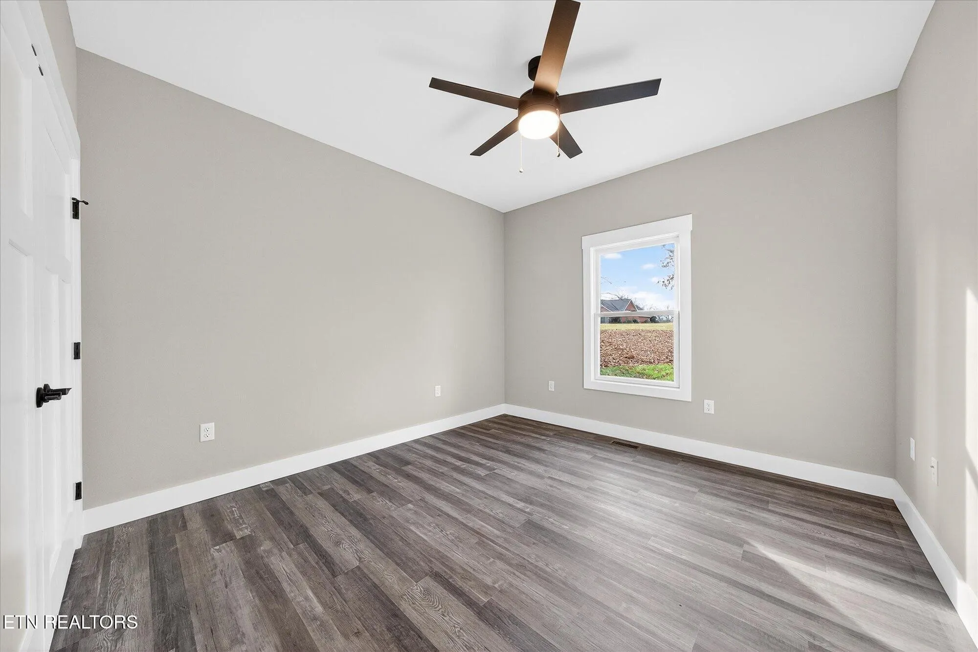 • Split-bedroom layout for privacy; guest bedrooms with LVP flooring and ceiling fans; guest bath with tub/shower combo, tile flooring, transom window, and quartz-top vanity\r\n