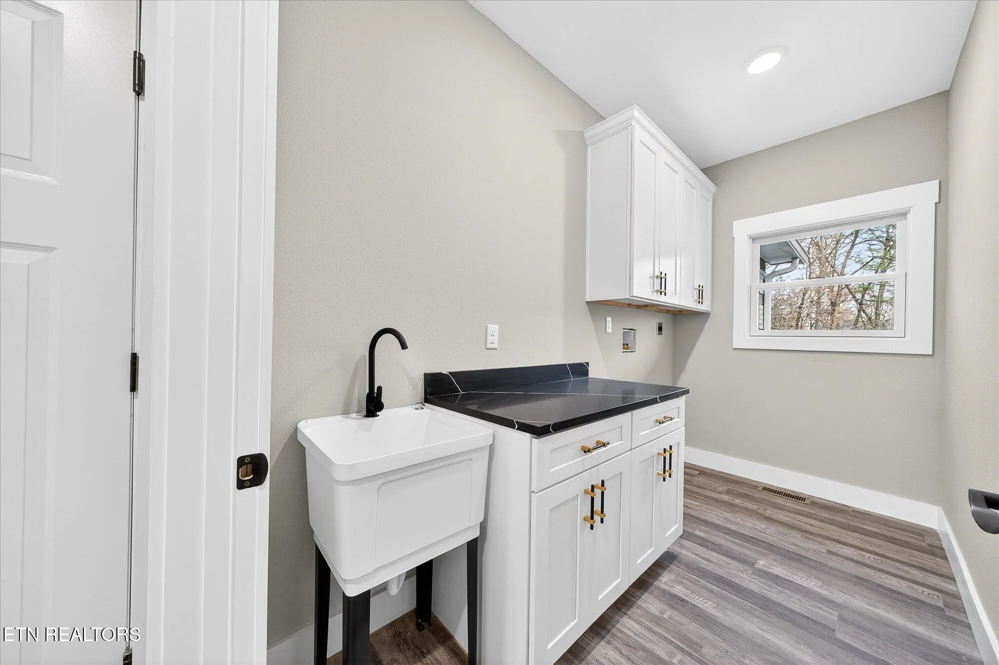 • Laundry room with cabinetry, folding area, and utility sink\r\n