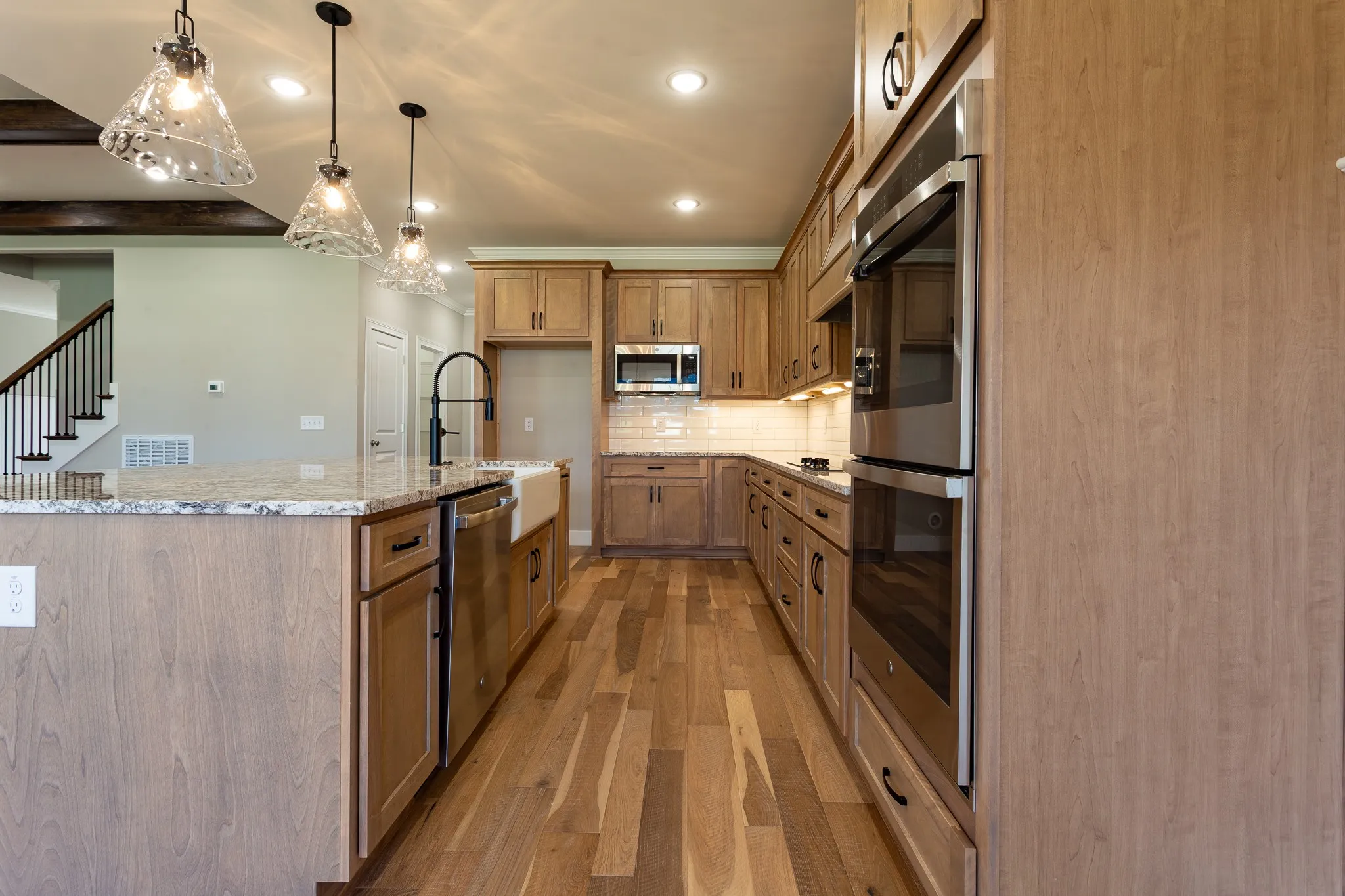 Beautiful 3-Bedroom Home with Bonus Room in Sango that checks all the boxes! This stunning 3-bedroom, 2.5-bath home with a spacious bonus room – perfect as a 4th bedroom – is located in the desirable Sango area. Step inside to a welcoming foyer featuring two coat closets and a convenient half bath. The kitchen is a dream with stainless steel appliances (double ovens, cooktop, microwave, dishwasher), quartz countertops, tile backsplash, farmhouse sink, large island, and an oversized walk-in pantry plus a storage closet. The adjacent dining area showcases vertical shiplap and access to the covered back porch – ideal for entertaining. Enjoy cozy evenings in the great room with a beamed ceiling and an electric fireplace framed by a classic mantle. The main-floor laundry room offers additional cabinetry for storage, while the garage entry flows through a functional mud bench drop zone right into the kitchen. The primary suite on the main floor is a luxurious retreat with double vanities topped with granite, a soaker tub, a tiled shower with seat, and a spacious walk-in closet with custom shelving. Upstairs, you’ll find two more bedrooms – each with walk-in closets – full bath with double granite vanities and a tub/shower combo, a bonus room with a walk-in closet (can be 4th bedroom), and two linen closets for added storage. Additional highlights include a 2-car side-entry garage, covered front and back porches, and thoughtful design throughout. No HOA!! Don’t miss your chance to make this beautiful home yours!
