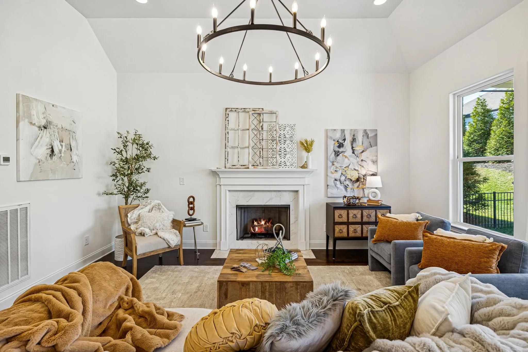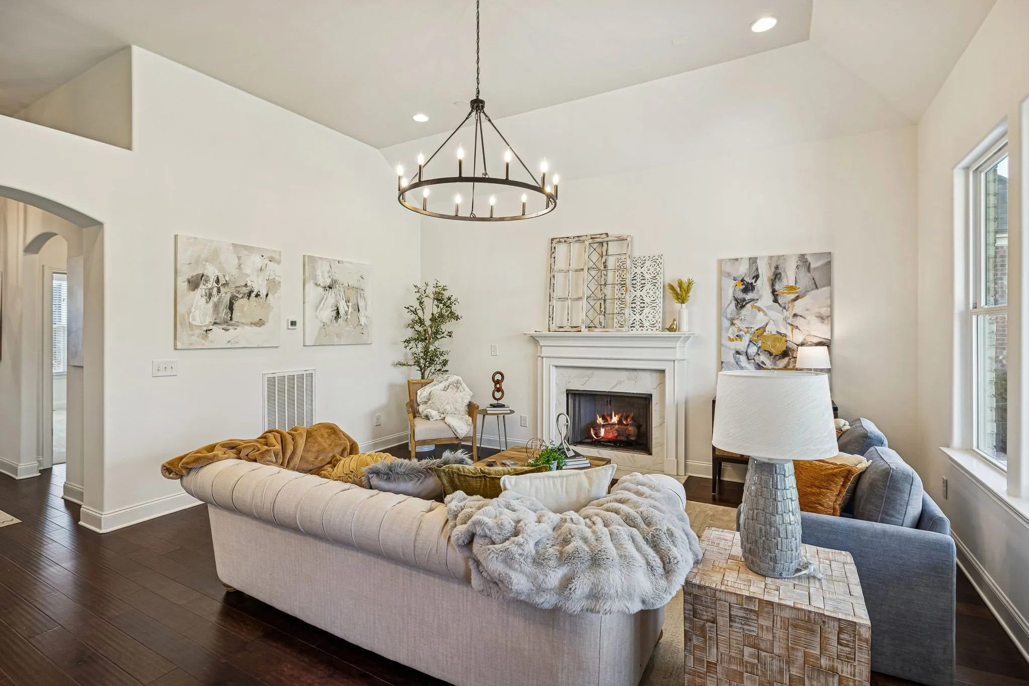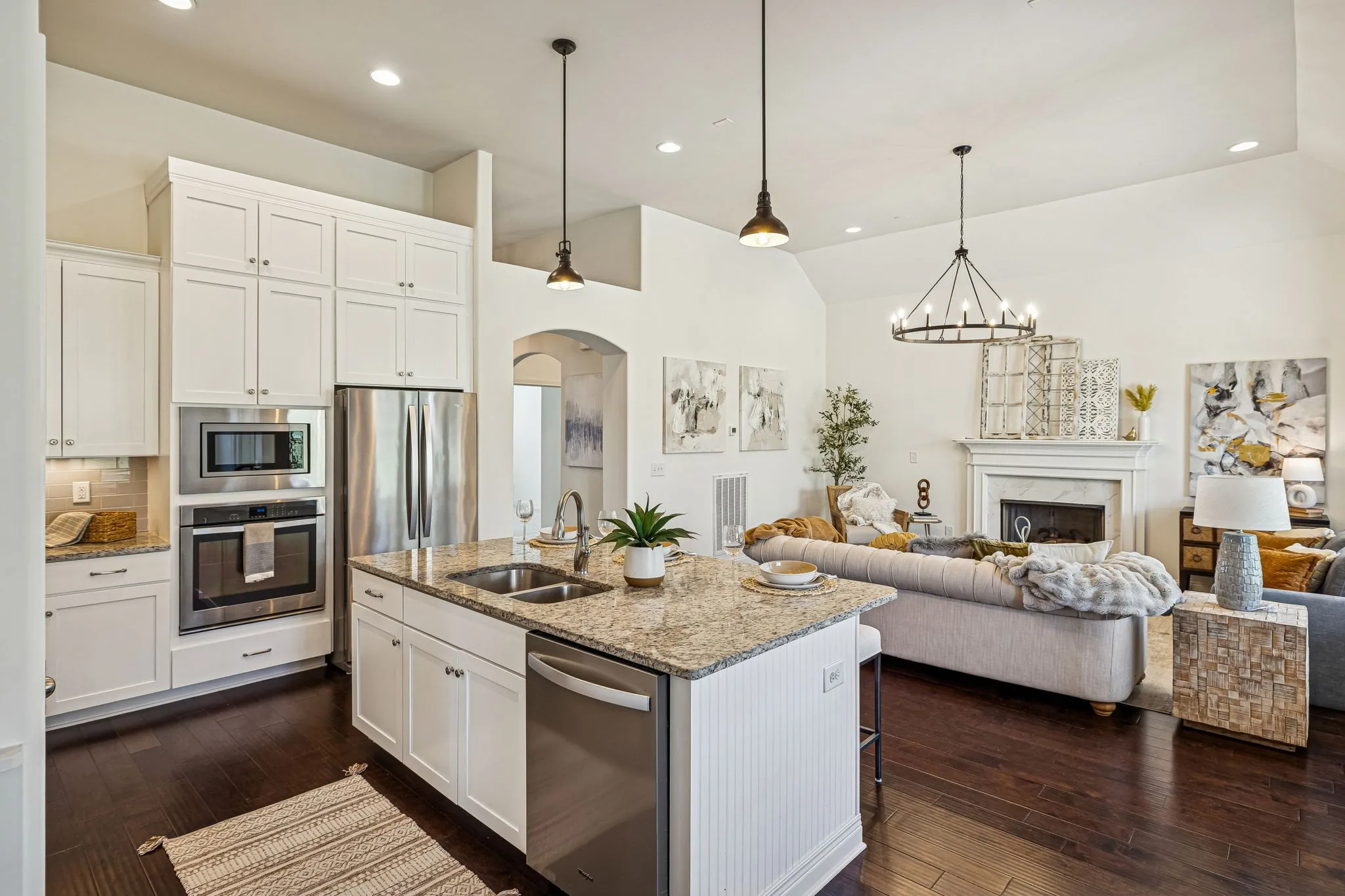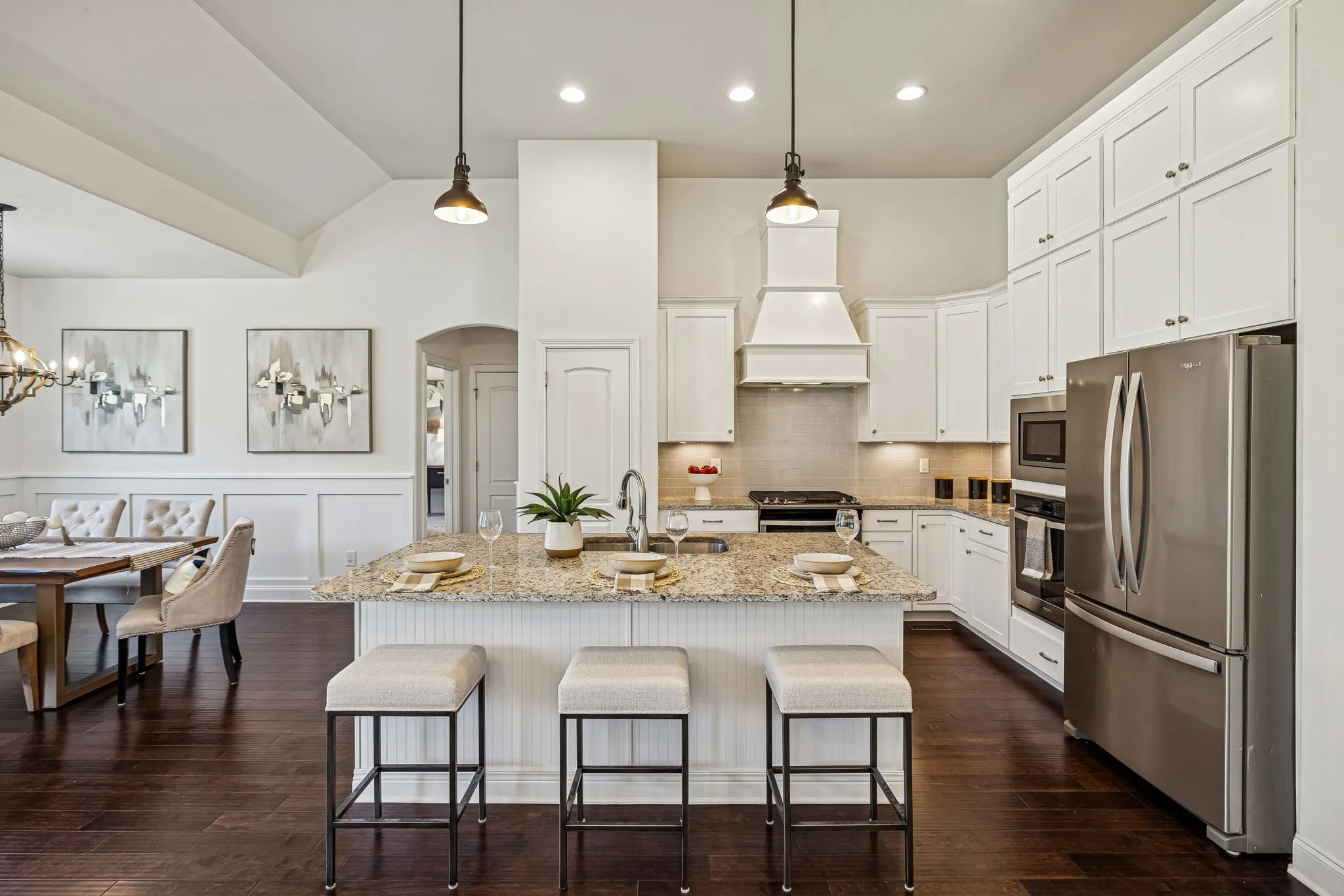 Experience elevated living in the highly-sought-after Canterbury community of Thompson’s Station. This refined residence offers 4 bedrooms and 3 full baths, with an elegant main-level living design featuring three bedrooms downstairs. The home’s soaring ceilings and open-concept living space flow seamlessly into a chef-caliber kitchen, creating an ideal setting for sophisticated entertaining. Its show-stopping primary suite boasts vaulted ceilings and a spa-inspired bath with a dramatic walk-in shower with dual heads, dual vanities, and a statement soaking tub worthy of a design magazine. Outdoors, enjoy a professionally maintained yard with an irrigation system and custom architectural lighting, a covered patio for alfresco dining, and an additional open-air patio perfect for a firepit and intimate gatherings. The builder also thoughtfully added a cozy, covered front porch to enjoy your morning coffee and the sunrise! Residents of Canterbury enjoy resort-style amenities, including expansive green spaces, two pools with cabanas, and direct access to the Thompson’s Station Greenway, connecting to the schools, parks and Tollgate Village. Ideally positioned near I-840 and I-65, with effortless access to downtown Franklin and Spring Hill, this home offers a rare blend of luxury, lifestyle, and location.