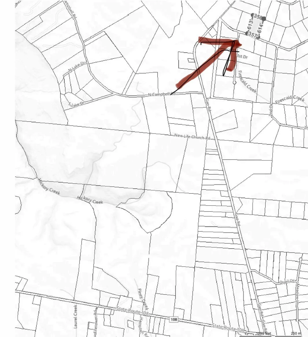 - Directions: From Hillsboro Viola Rd take Hwy 108 turn left on Hwy 108. Turn right on Hunters Ridge Lot is on the left. See map in Media. There is no for sale sign. Property starts 1012 feet from corner of Gap Rd and Hunters Ridge. See Media
