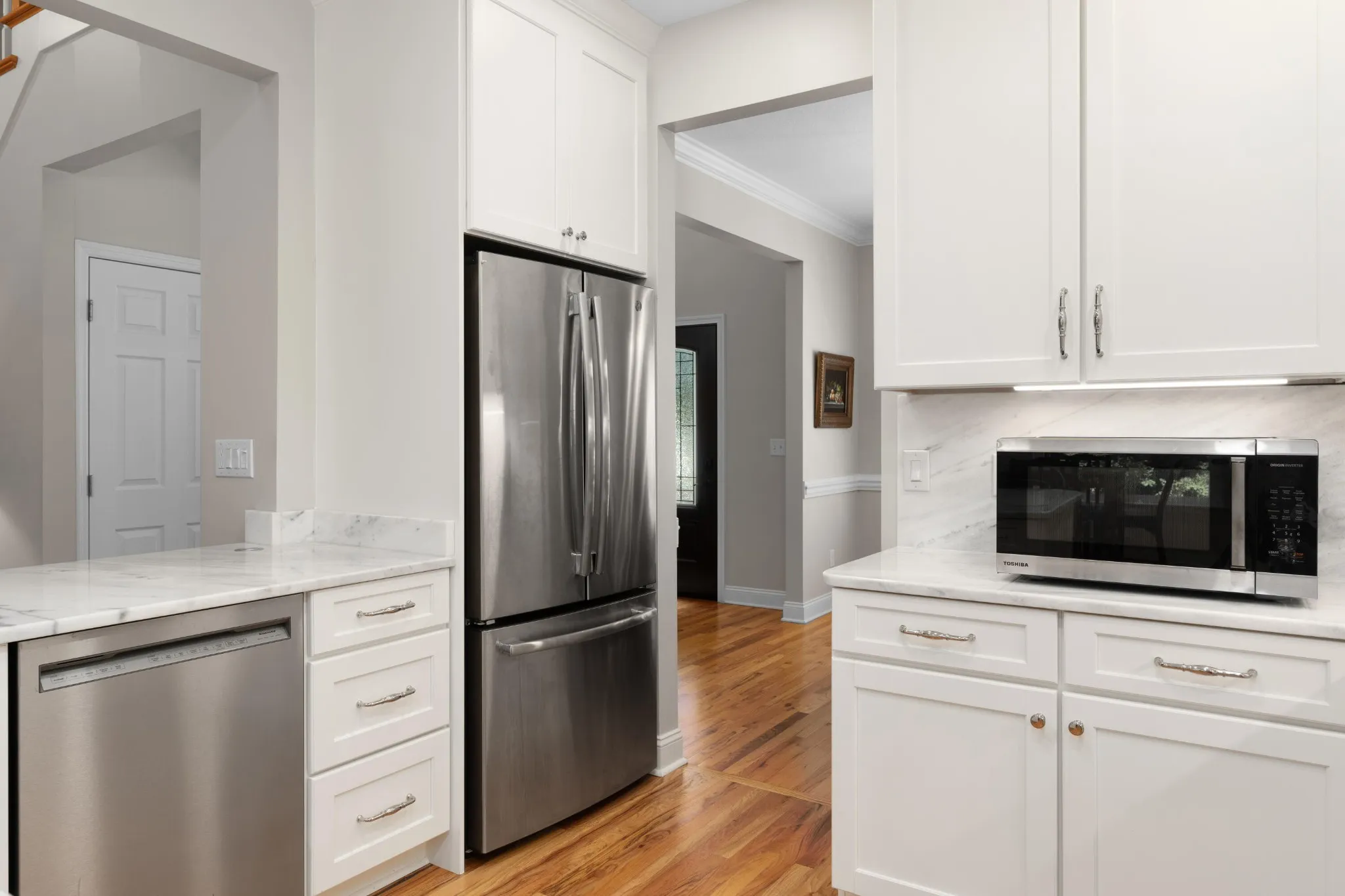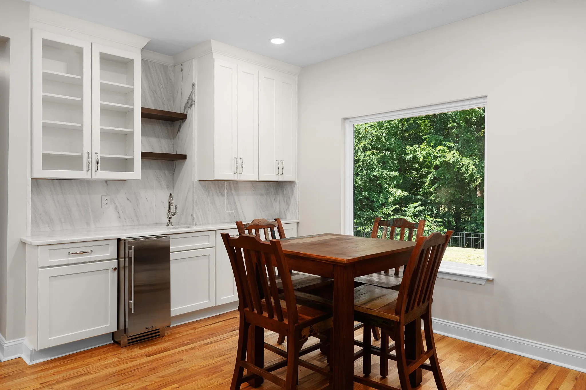 +"PublicRemarks": "Fantastic opportunity in the established Old Stage Run neighborhood in the heart of Hixson close to schools, parks, medical facilities, shopping, restaurants and approximately 20 minutes from downtown Chattanooga. This 3 or 4 bedroom, 3 full bath home boasts quality finishes, a large, fenced back yard and an absolutely amazing screened in porch. You will love the finishes and updates, including the hardwood floors, recessed and decorative lighting, beautiful countertops, plantation shutters, and specialty ceilings. Your tour of the main level begins with the 2-story foyer that opens to the living room on one side and the formal dining room on the other. The great room is open to the updated kitchen and breakfast area and has a vaulted ceiling, gas fireplace and access to the screened-in porch providing a wonderful flow for indoor to outdoor entertaining or everyday living. The kitchen has quartzite countertops and backsplash, custom cabinetry with pull-out and soft-close drawers, stainless appliances, including a Viking convection oven with gas cooktop, and a level dining bar for meals on the go. The breakfast area has a wet bar with a separate ice maker. A hallway leads to the double garage, a full bath, a fantastic walk-in pantry, and the original 4th bedroom. The pantry was expanded by taking in the bedroom closet, but the pocket door from this room remains should a new owner prefer to convert part of the existing pantry back to a closet, but this room currently makes a great office and has shared access to the full guest bath. Head upstairs where you will find the three additional sleeping quarters, including the primary bedroom which has a trey ceiling and room for a small sitting area, as well as the primary bath with dual vanity, jetted tub, separate shower and a nice walk-in closet. The other two bedrooms are connected by a shared bath."