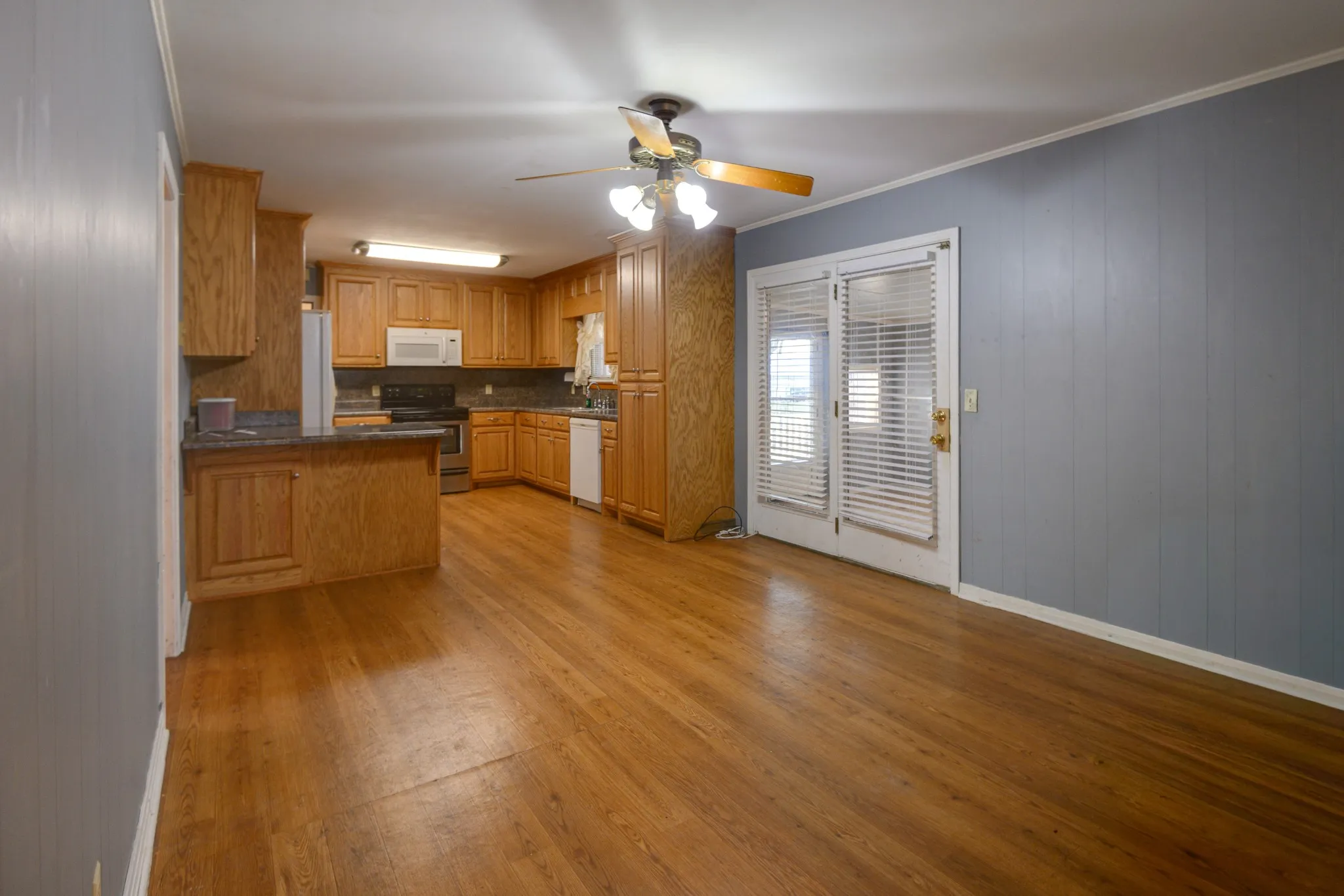 Key Features: Large corner lot: Ample yard space with great curb appeal, Cozy sunroom includes a fireplace and central air/heat for year-round use, roomy kitchen with new raised panel cabinets. Fenced backyard providing a secure for pets or children. And a mini barn that gives extra storage! This home is perfect for a family seeking a charming and practical living space. Schedule a showing today!