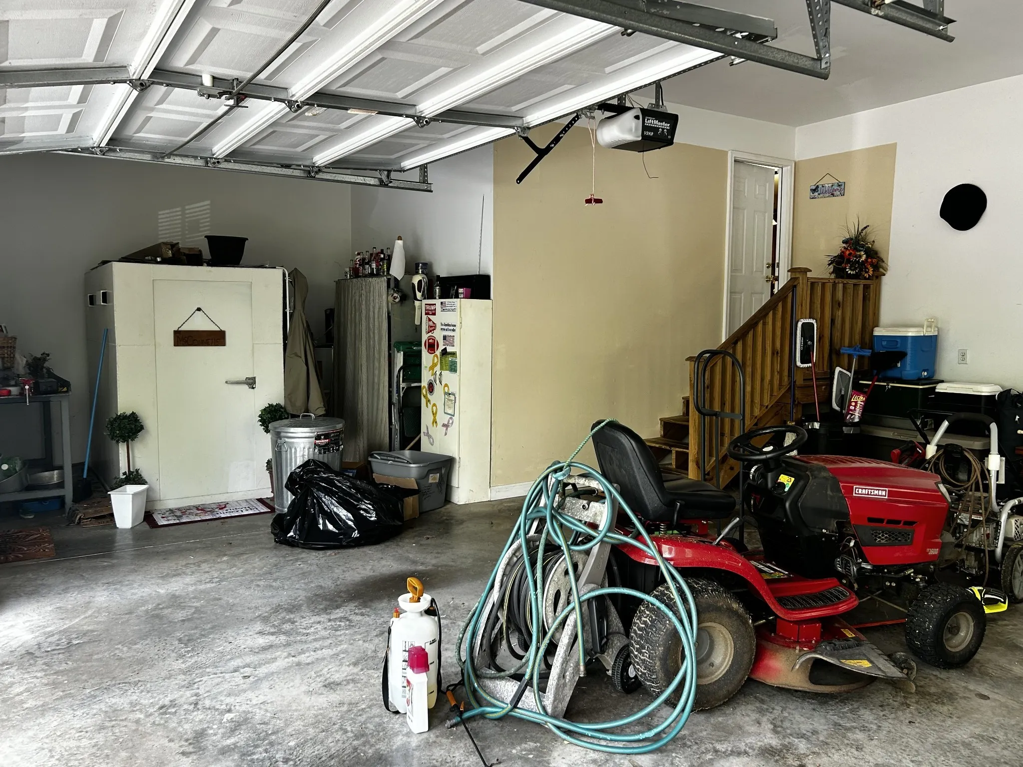 Custom-built elevated storage in the garage