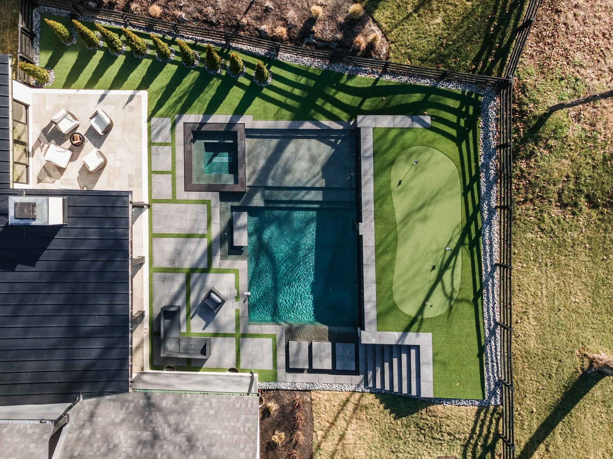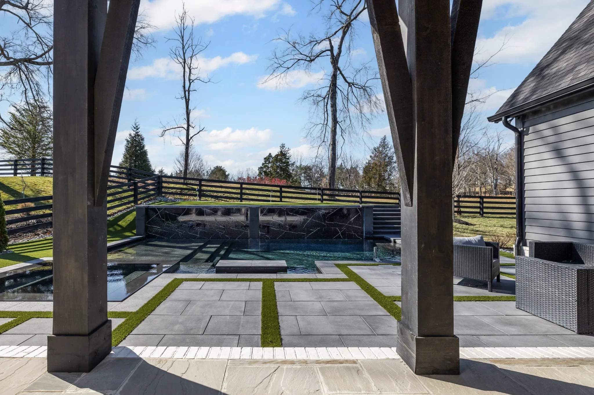 For the ultimate in leisure and entertainment, enjoy the indoor bar room with a glass-enclosed wine cellar, a state-of-the-art golf simulator, and multiple lounge areas designed for relaxation and social gatherings. The expansive outdoor entertaining area is a true showstopper, featuring a fully equipped kitchen, a cozy fireplace, and ample seating for guests. The highlight is the resort-style pool and hot tub, surrounded by sleek stonework and lush landscaping, offering breathtaking views of Troubadour’s Tom Fazio-designed championship golf course. Additional features include striking curb appeal with modern architectural design, large glass doors that seamlessly connect indoor and outdoor spaces, designer lighting fixtures, custom finishes throughout, and a three-car garage with ample storage. This home is more than a residence—it’s a lifestyle.