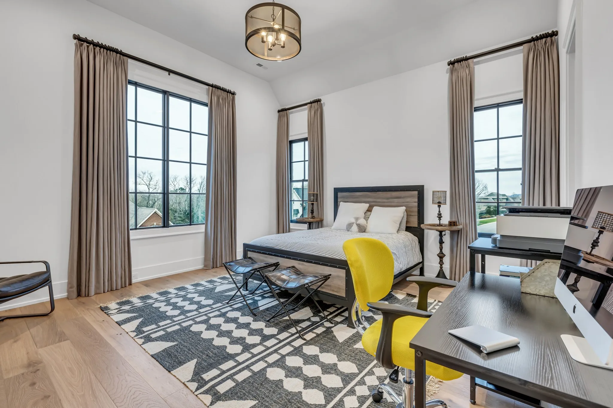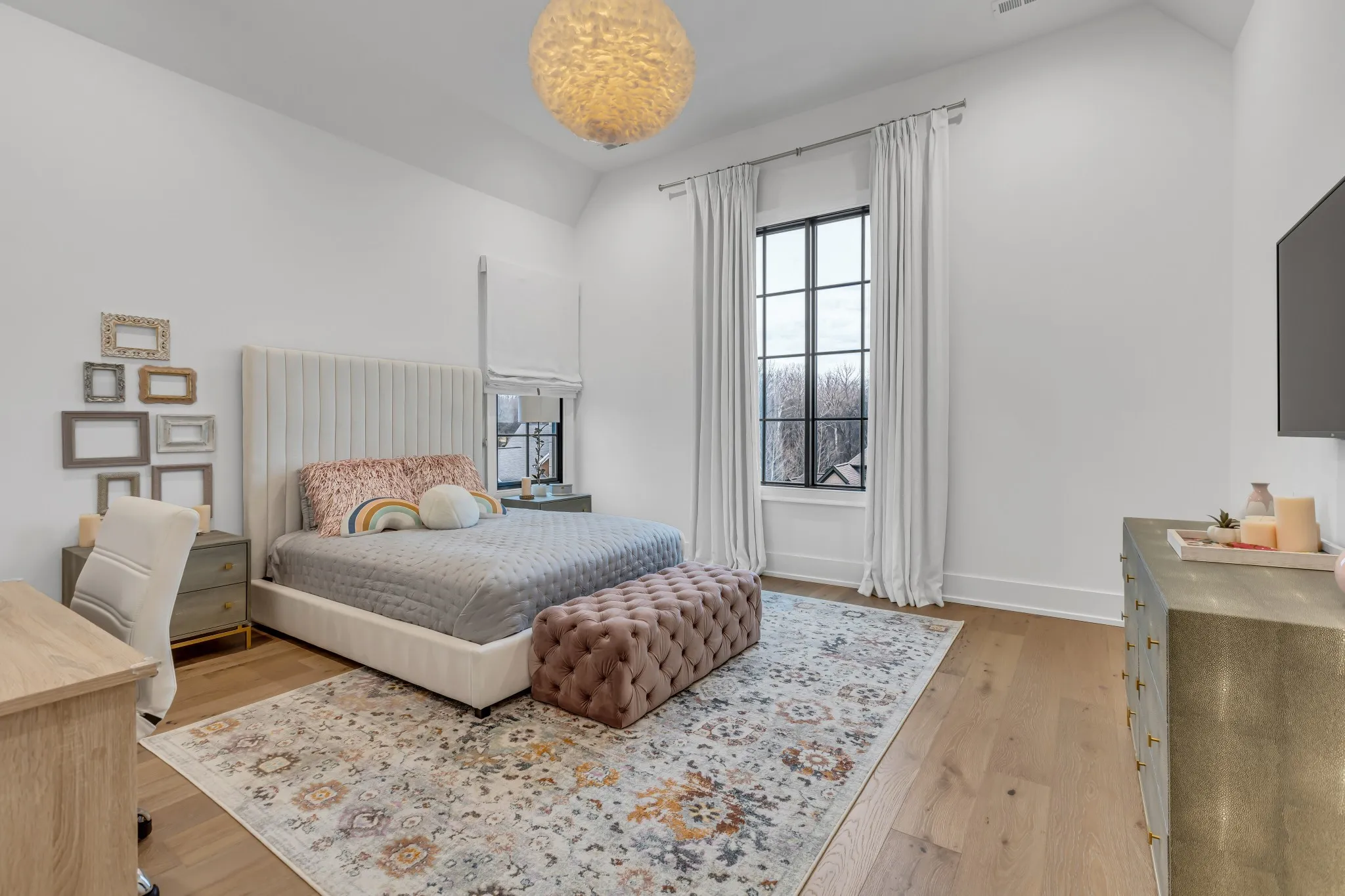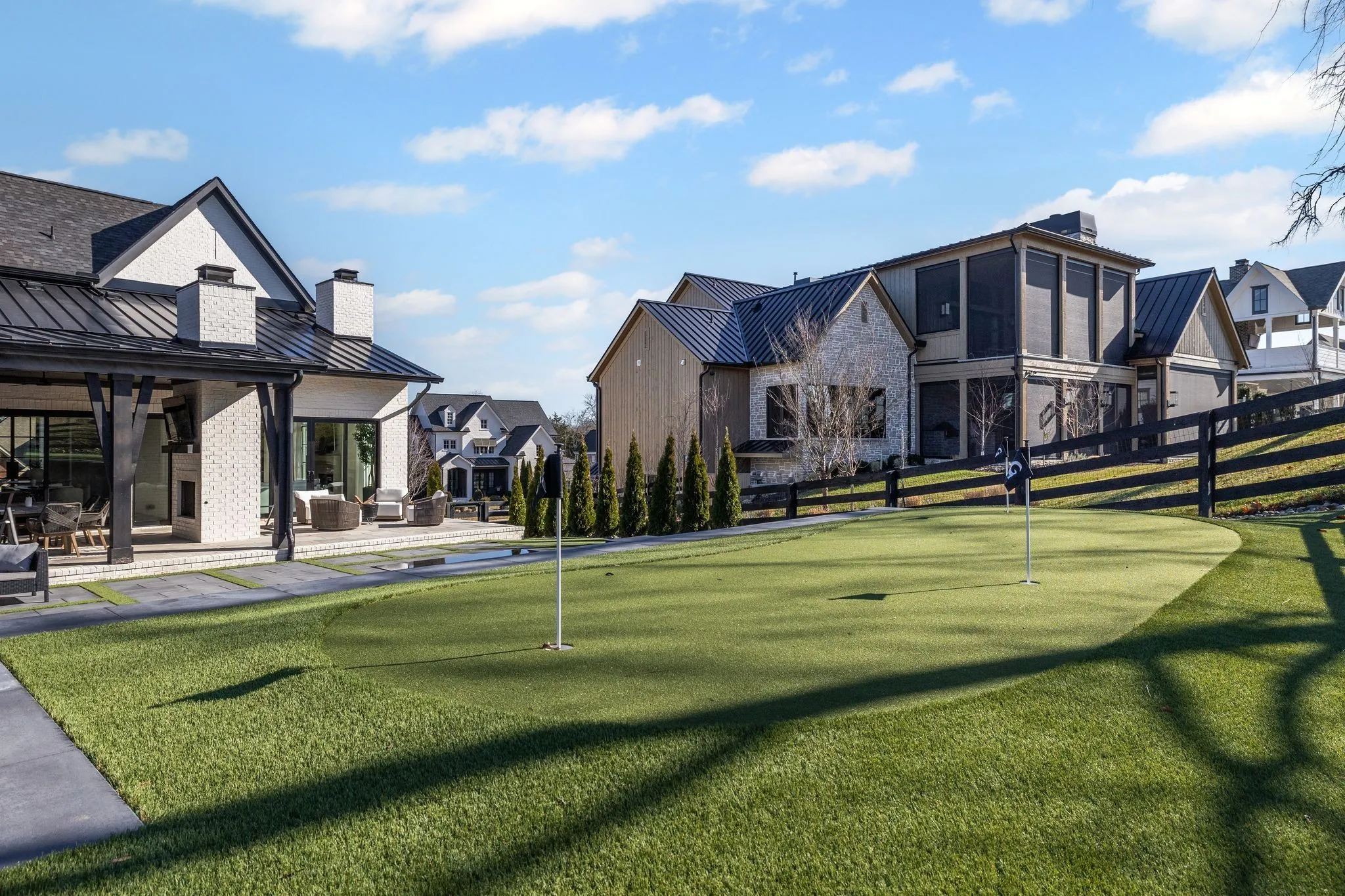 Welcome to this stunning custom-built residence in the prestigious Troubadour Golf & Field Club, crafted by Tennessee Valley Homes in 2022. Spanning 5,929 square feet on a 0.45-acre lot, this architectural masterpiece combines modern elegance with timeless design, offering an unparalleled lifestyle in one of Middle Tennessee’s most sought-after communities. This home features five spacious bedrooms, five full bathrooms, and two half baths, providing ample space for family and guests. Step inside to discover an open-concept floor plan flooded with natural light and adorned with wide-plank hardwood floors. The soaring ceilings and exposed beams create a sense of grandeur, while sleek, modern finishes provide a warm and inviting atmosphere. The gourmet kitchen boasts top-of-the-line appliances, a large island, and seamless flow into the dining and living areas—perfect for entertaining. A dedicated office space with custom millwork and large windows offers serene views and an ideal work-from-home environment. The luxurious primary suite serves as a private retreat, featuring a spa-like bathroom and generous closet space.