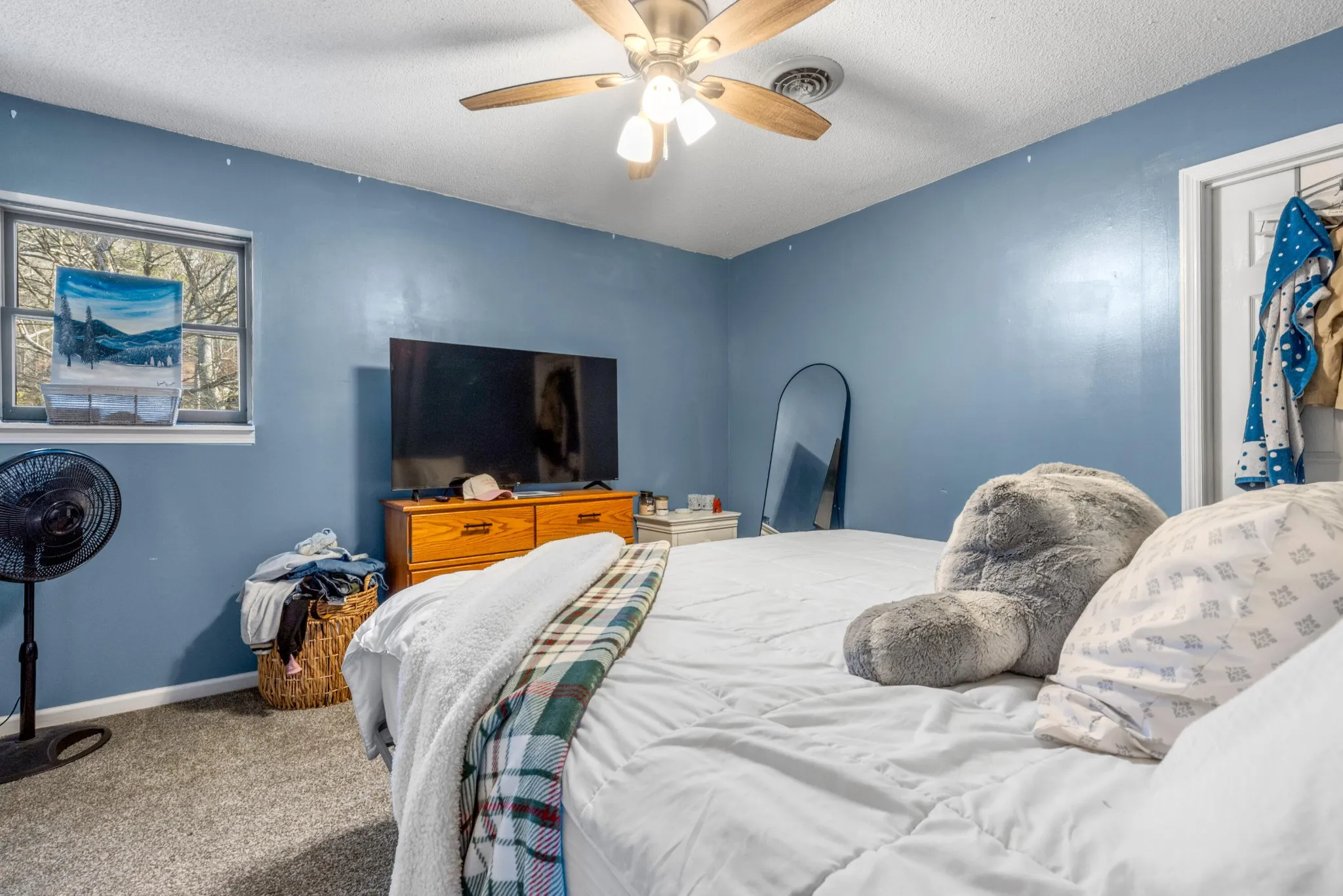 A main-level primary suite offers comfort and privacy, complete with an ensuite bathroom and convenient access to a nearby half bath for guests. An additional bedroom on the main level adds flexibility for a home office or guest room.\r\n