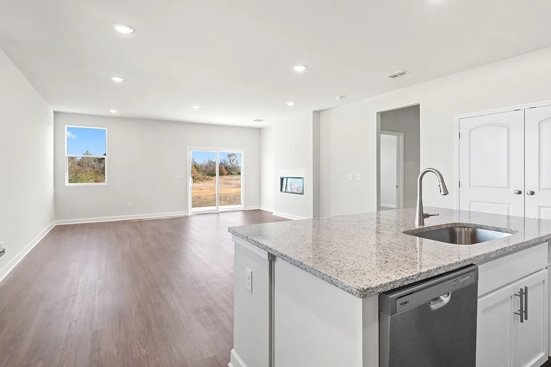 This single-story home at Barton Hills in Spring Hill, TN is full of thoughtful details and easy flow. The spacious corner lot sits just across from the community amenities, with treeline views across the street for added privacy and charm. Inside, an open-concept layout centers around an extended kitchen with abundant counterspace—perfect for everything from weeknight dinners to weekend hosting. The kitchen flows easily into the dining area and great room, which opens to a covered patio for seamless indoor-outdoor living.