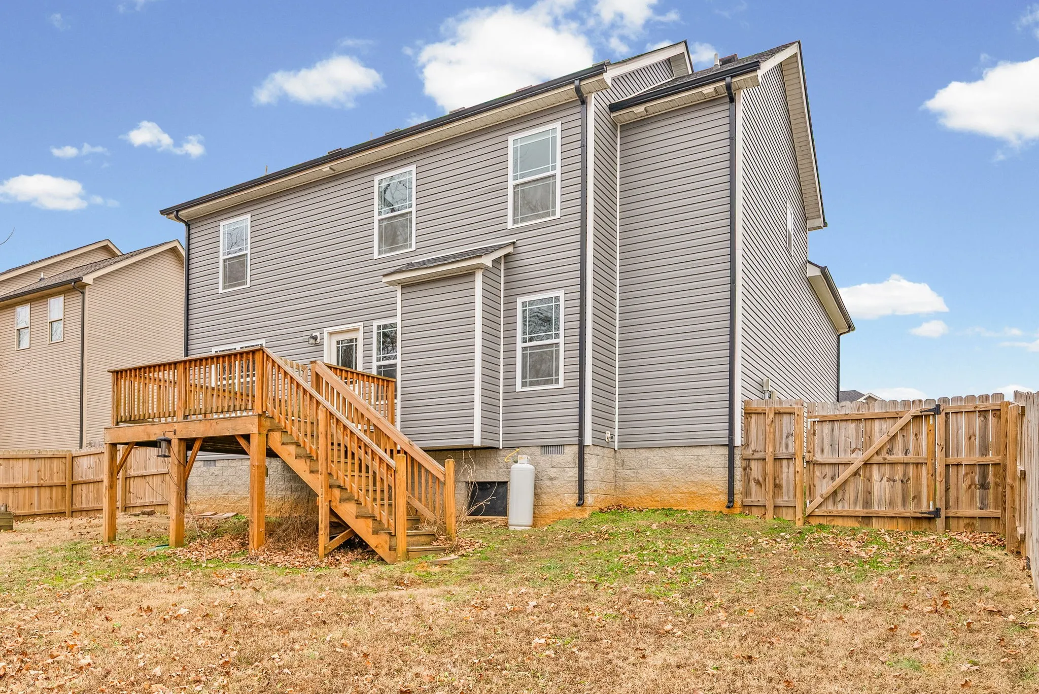Quality construction built in 2017, this well-maintained 3-bedroom, 2.5-bath home offers 2,018 sq ft of comfortable living space. The home features an above-garage bonus/recreation room, a two-car garage, and a cozy propane fireplace. The owner’s suite includes a walk-in closet, double sinks, and a combo tub/shower. Enjoy outdoor living with a wood deck overlooking a generous backyard with a privacy fence, mature trees, and no backyard neighbors—perfect for relaxing or entertaining. Conveniently located close to schools, shopping, and Fort Campbell, KY.