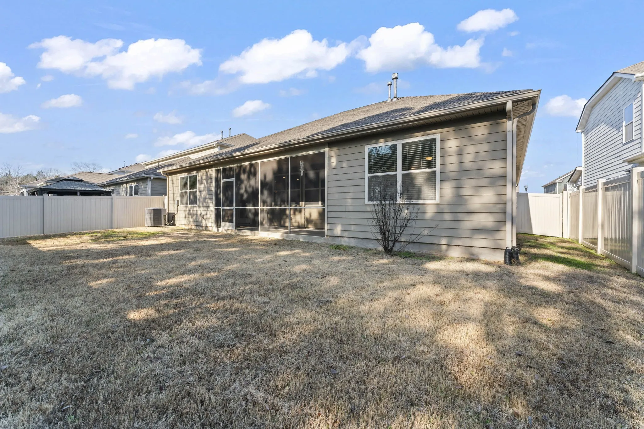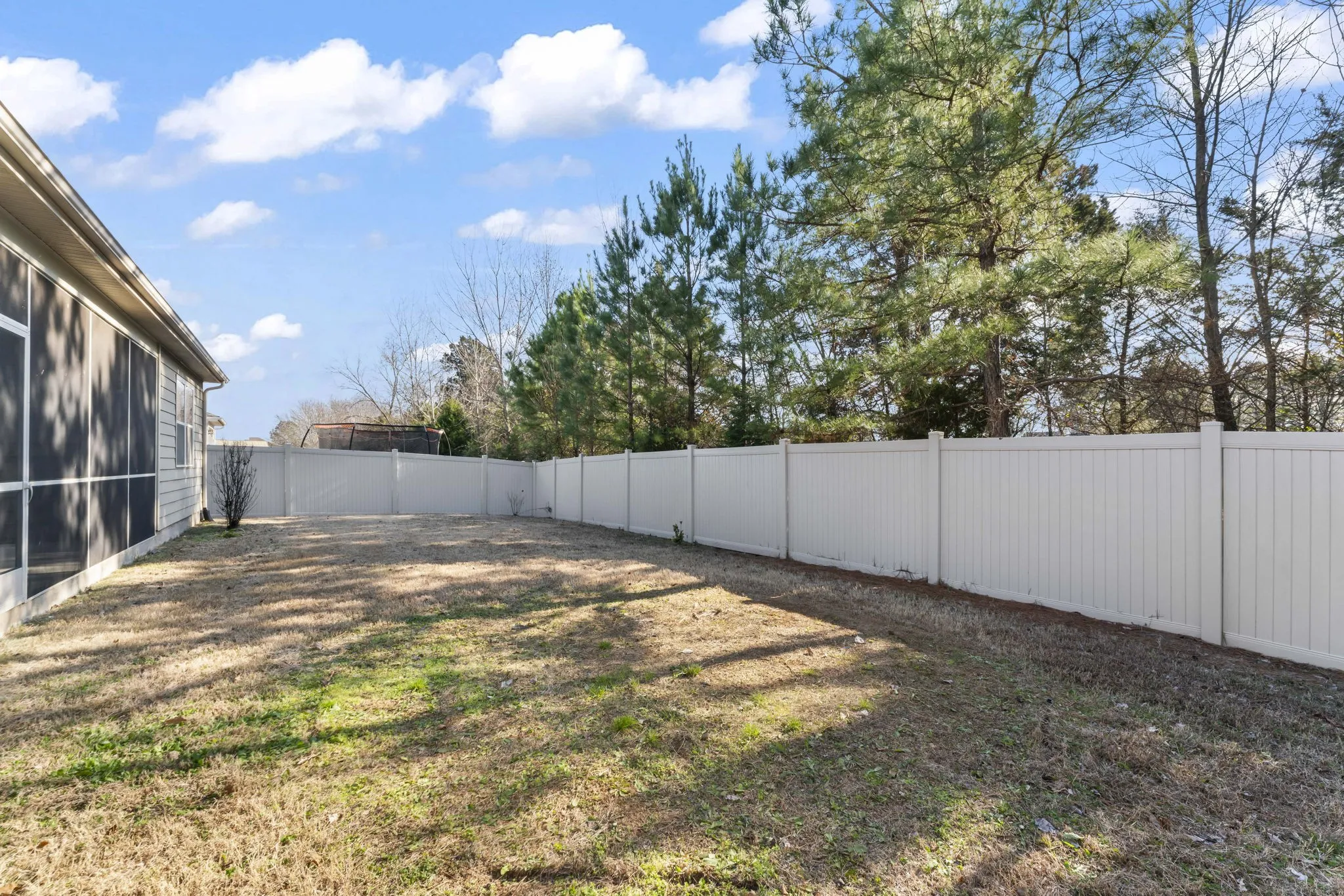 Step outside to a screened-in back patio overlooking a peaceful tree line—no rear neighbors—along with a fully fenced yard, perfect for relaxing or pets.