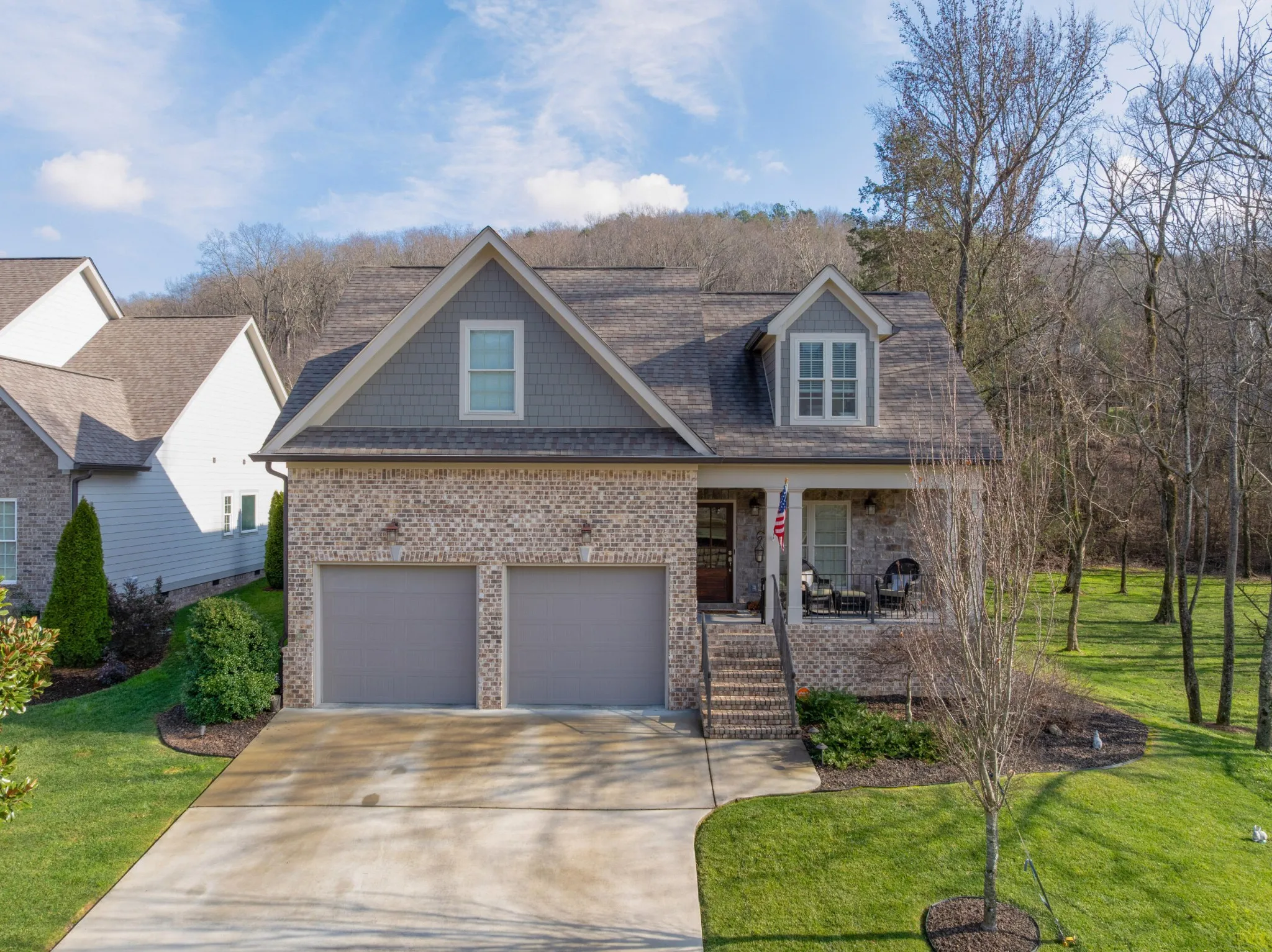 Fantastic opportunity in the desirable Horse Creek Farms community at the foot of Signal Mountain just minutes to schools, parks and hiking trails, the shopping and restaurants of the North Shore and downtown Chattanooga. This beautiful 3 or 4 bedroom, 3 bath versatile home was built in 2020 and boasts a prime location next to a partially wooded community lot, allowing you to enjoy the use and privacy without having to maintain it yourself! Since purchasing the home, the sellers have further enhanced the appeal by installing a heated saltwater gunite pool with a spa effectively extending your living and entertaining spaces to the outdoors. The home’s exterior also boasts brick, stone and Hardie with a 2-bay garage, covered front porch and side screened-in porch overlooking the community lot, while the interior has an open and floor plan, the primary on the main, quality finishes such as hardwood floors, tiled baths, granite countertops, crown molding, decorative and recessed lighting, custom Roman and roller shades, great storage or expansion room, and more. Your tour begins with entry to the dedicated foyer that has French doors that lead to the main level gust bedroom open to a main level guest bedroom or office with access to the shared full guest bath. Continue down the hall where you will find the heart of the home which is the open kitchen, dining and great room. The kitchen has a center island with pendant lighting, granite countertops, subway tile backsplash, under-cabinet lighting, stainless appliances, pantry and is a few short steps from the laundry room and garage for easy loading and unloading. Dining area has a fun new light fixture, and the great room has a stacked stone gas fireplace and 2 sets of French doors to the screened-in porch. The primary bedroom is on the back of the house and also has access to the screened porch, as well as a walk-in closet with organizer system, and the primary bath with a dual vanity, free standing soaking tub, a separa