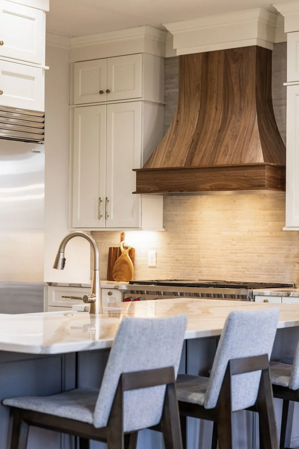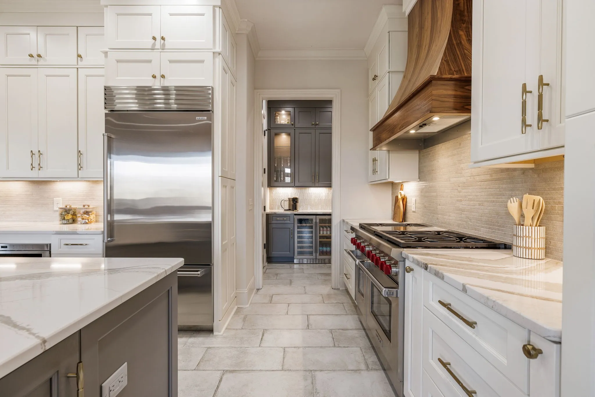 The home is designed for connection—both indoors & out. From the welcoming entry and formal dining room, the layout opens into a dramatic two-story great room where a stone fireplace & expansive windows create a space that feels both impressive and comfortable. The fully remodeled kitchen is the natural gathering place, featuring a nine-foot island, floor-to-ceiling cabinetry, quartz countertops, an entertaining bar w/wine refrigerator & premium appliances including a Wolfe gas range & built-in Sub-Zero refrigerator.