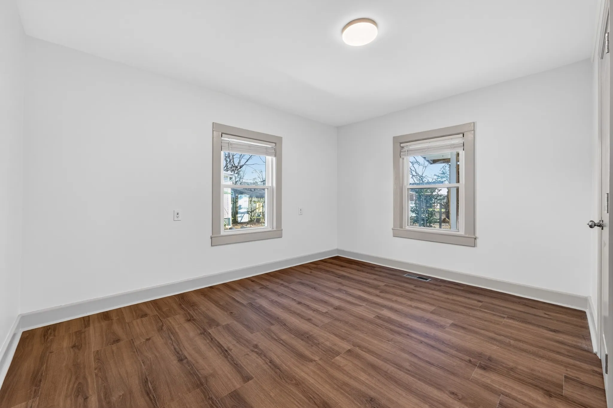 Recent exterior updates include replaced and freshly painted siding, painted doors, a new side door, and the addition of a mini-split unit for the upstairs space. Inside, the home features all new luxury vinyl plank flooring throughout, new interior doors and hardware, updated lighting, and fresh interior paint.