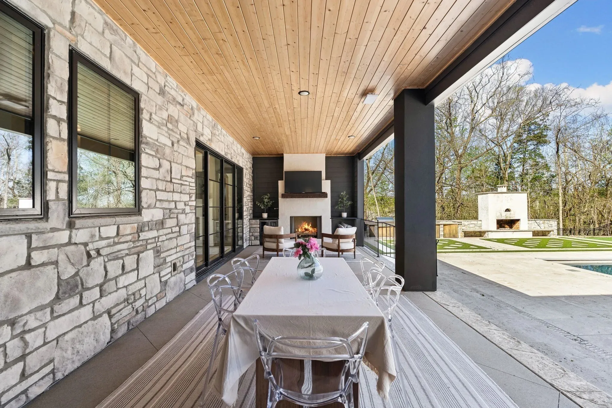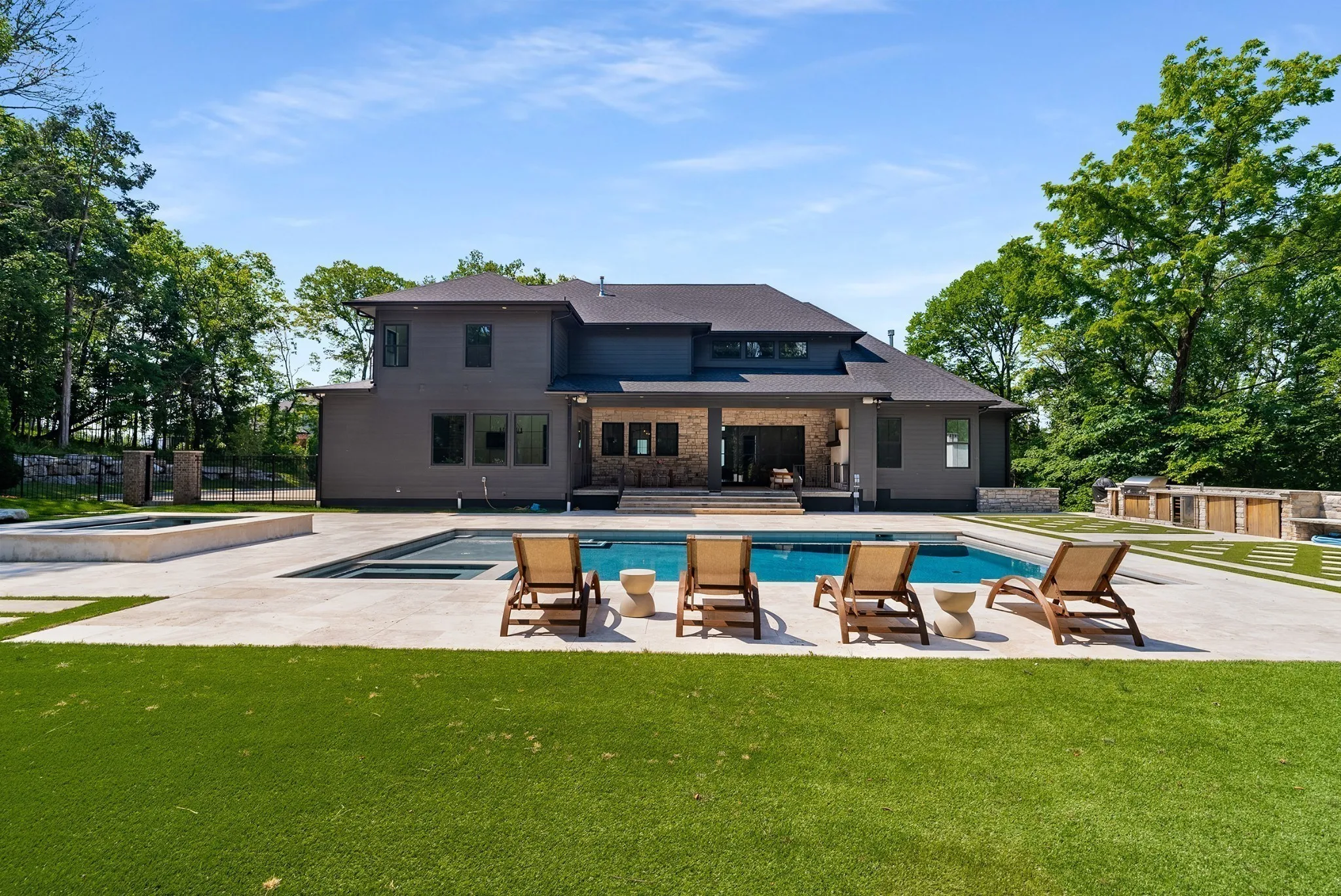 +"PublicRemarks": "Must see “Chateau Soleil” one owner, one of a kind custom newer luxury const. Rare PRIVATE Estate Enclave (approved for Gated Entrance)- 2+ Private ACRES IN FRANKLIN, TN. NO LUXURY FEATURE LEFT OUT! Premium homesite backing to treed forested common space. This exquisite residence offers 5 generously sized ensuite Brms, 3 half baths, theater w/ surround sound, 3 bonus rooms - one on the main level w/ separate entrance possible in-law suite w/ kitchen; chef’s kitchen (w/ high end Miele appliances, grand quartz-topped center island, 2 sinks; custom vent; 2 dishwashers, central vac., high end plumbing fixtures, a custom walk-in pantry with floor-to-ceiling cabinetry), 5 wine fridges, 3 fps; large formal dining for 12+; beautiful built ins; fully customized closets; soaring 20 ft ceilings w/ beams plus ceiling treatments; office w/ views. Step outside to a entertainer’s dream: treelined sanctuary w/seamless indoor/outdoor living w/ 4-panel sliders to extended covered porch to saltwater gunnite pool w/ tanning ledge, spa, cold plunge, smoker, grill, 2 fireplaces, pizza oven. Room to build possible tennis courts or guest/pool house. Zoned for Top Schools: Ravenwood, Clovercroft, & Woodlands. (Step outside to your private, tree-lined sanctuary, where a custom saltwater pool with tanning ledge, hot tub, and cold plunge await. The outdoor kitchen is a true entertainer’s dream, boasting a built-in smoker, gas grill, pizza oven fireplace, and refrigerator—all set on an expansive travertine patio. Appraised for $5.1 million- unmatched privacy, outdoor living and luxury."