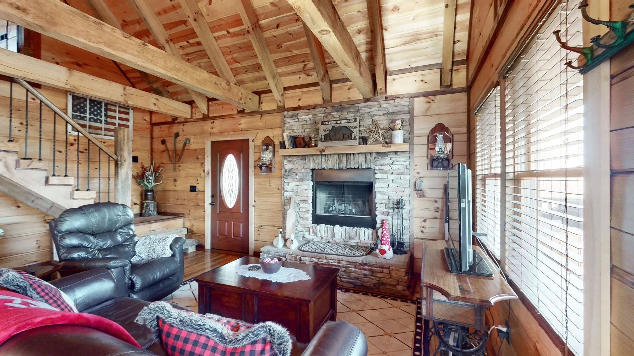 Tucked away at the end of Perry Rd, this charming cabin offers the perfect opportunity for those seeking a serene and rustic escape. With two bedrooms two baths, this cabin provides both comfort and convenience for you and your guests. Whether you are unwinding on the spacious wrap around porch, taking in the sights and sounds of the forest, relaxing in the Hot Springs hot tub, or cozying up by the fireplace indoors, this property has every opportunity to unplug and enjoy your new home. Perfect for the nature enthusiasts as there are frequent visits from local wildlife. The outdoor firepit includes a heavy duty grilling grate for outdoor meals. Beautiful reclaimed oak barn wood has been refinished for the wood floor covering as well as black walnut trim throughout the cabin. A short 10 minute drive back into town provides ample restaurants, shopping, and hiking at Stone Fort Park. Previously utilized as short term lodging, this retreat has had great VRBO and Airbnb experiences.