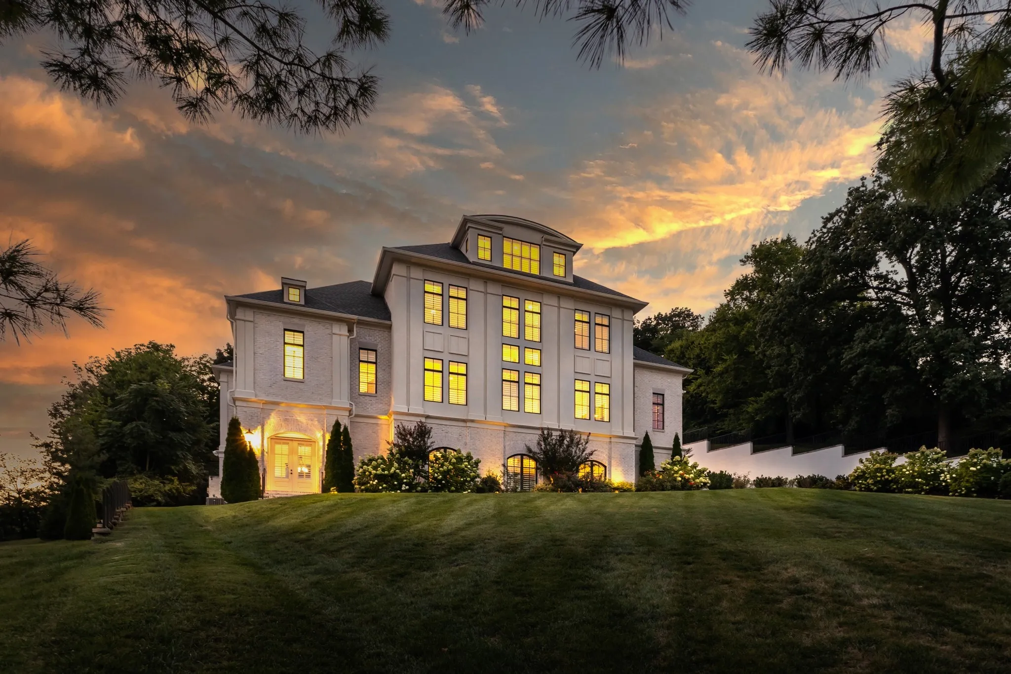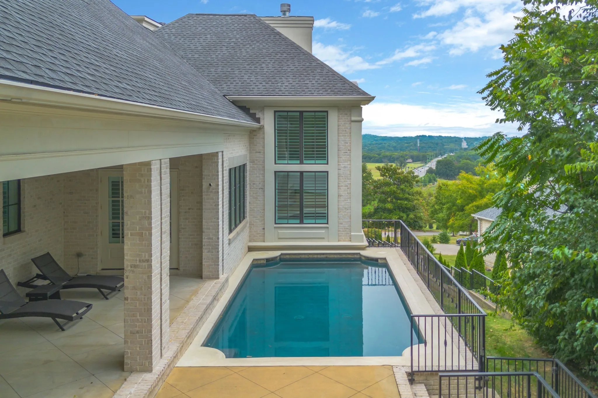 Welcome to this sophisticated estate home in the elite Mockingbird Hill neighborhood known for its spectacular Brentwood hill views. Built in 2022, this custom home exudes refined elegance and meticulous craftsmanship across every inch of its thoughtfully designed layout. From the moment you arrive through grand double doors, you’re welcomed into a world of elevated living—where soaring ceilings, gleaming hardwoods, and handcrafted millwork define each space. The gourmet kitchen is a chef’s dream, featuring Wolf and Fisher & Paykel appliances, expansive counters, a walk-in pantry, and a full butler’s working pantry equipped for seamless entertaining. The adjoining breakfast nook is a sun-filled retreat, while the formal dining room sets the stage for unforgettable evenings. Every bedroom offers its own en-suite bath, including private upper-level suites and a lower-level guest quarters with exterior access—ideal for multi-generational in-law suite living or for extended stays. The richly appointed wood-paneled library and office create an atmosphere of refinement, perfect for work or quiet library.Outdoors, escape to your own resort-style sanctuary with a sparkling in-ground pool with fabulous view, covered patio, and outdoor kitchen area..all framed by lush landscaping and mature trees. Additional highlights include a three-car garage, elegant plantation shutters, a finished third-floor bonus suite with bar and bath, and a lower-level bar and lounge perfect for entertaining. Perfectly blending traditional architecture with modern luxury, this is more than just a home—it’s an experience. Discover comfort, style, and sophistication in every detail at 5014 Mountview Place….just 5 minutes from the city of Brentwood and Cool Springs! A 6th Bedroom option could be on the top level which has a full bath but no door and in the basement room currently used as a theater room which has access to a full hall bath.See attached flloorplan for layout.