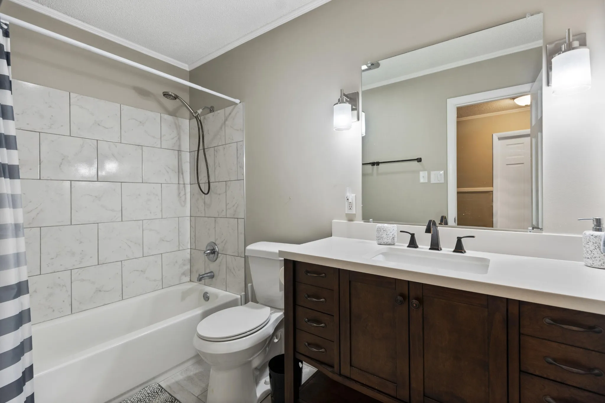 Spacious and versatile, this beautifully updated home offers 5 bedrooms and 3 full baths, including two primary suite; one conveniently located on the main level. The home features beautifully updated bathrooms along with an updated kitchen showcasing granite countertops and crisp white cabinetry. Wood flooring enhances the main living areas, adding warmth and continuity throughout.