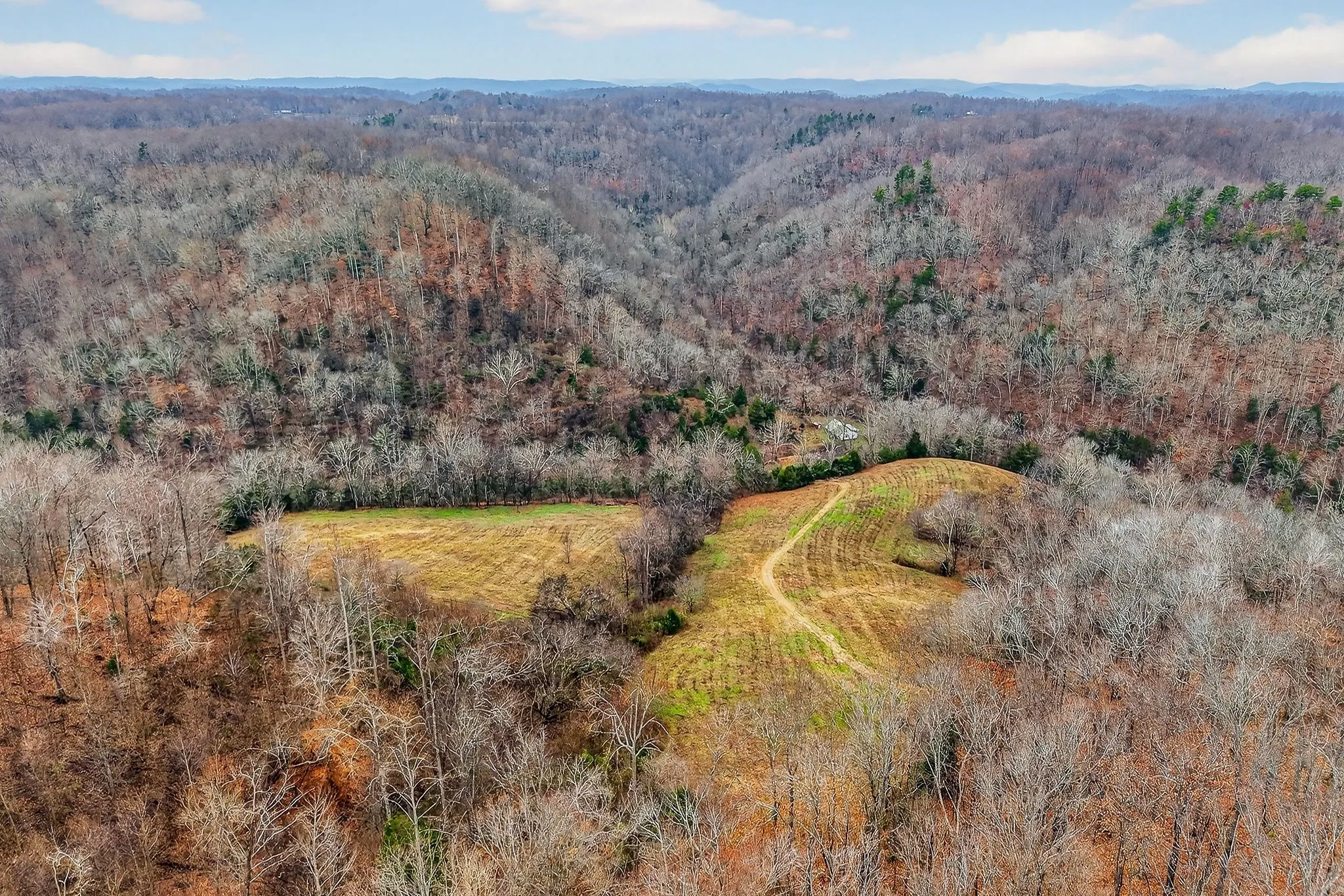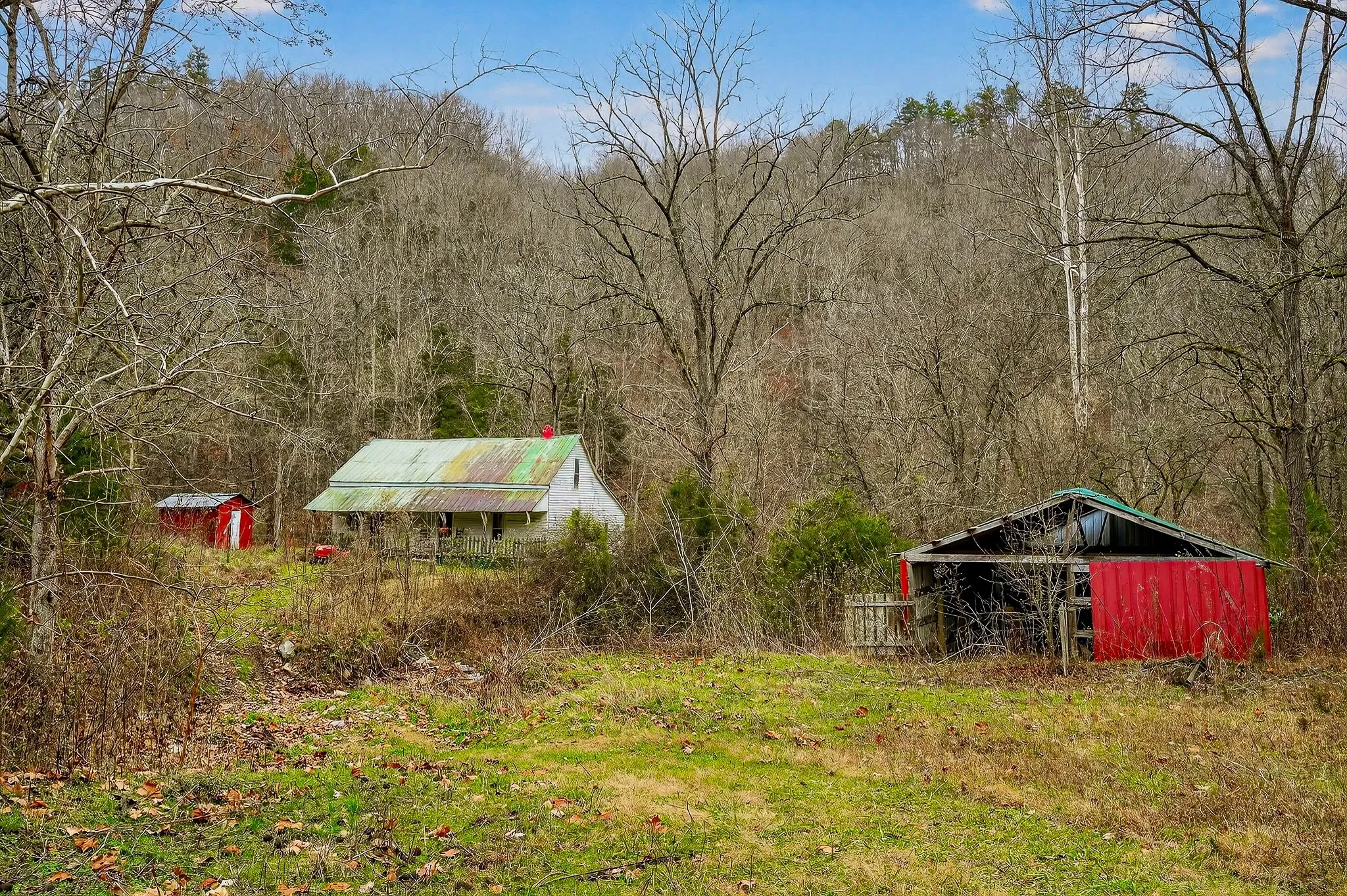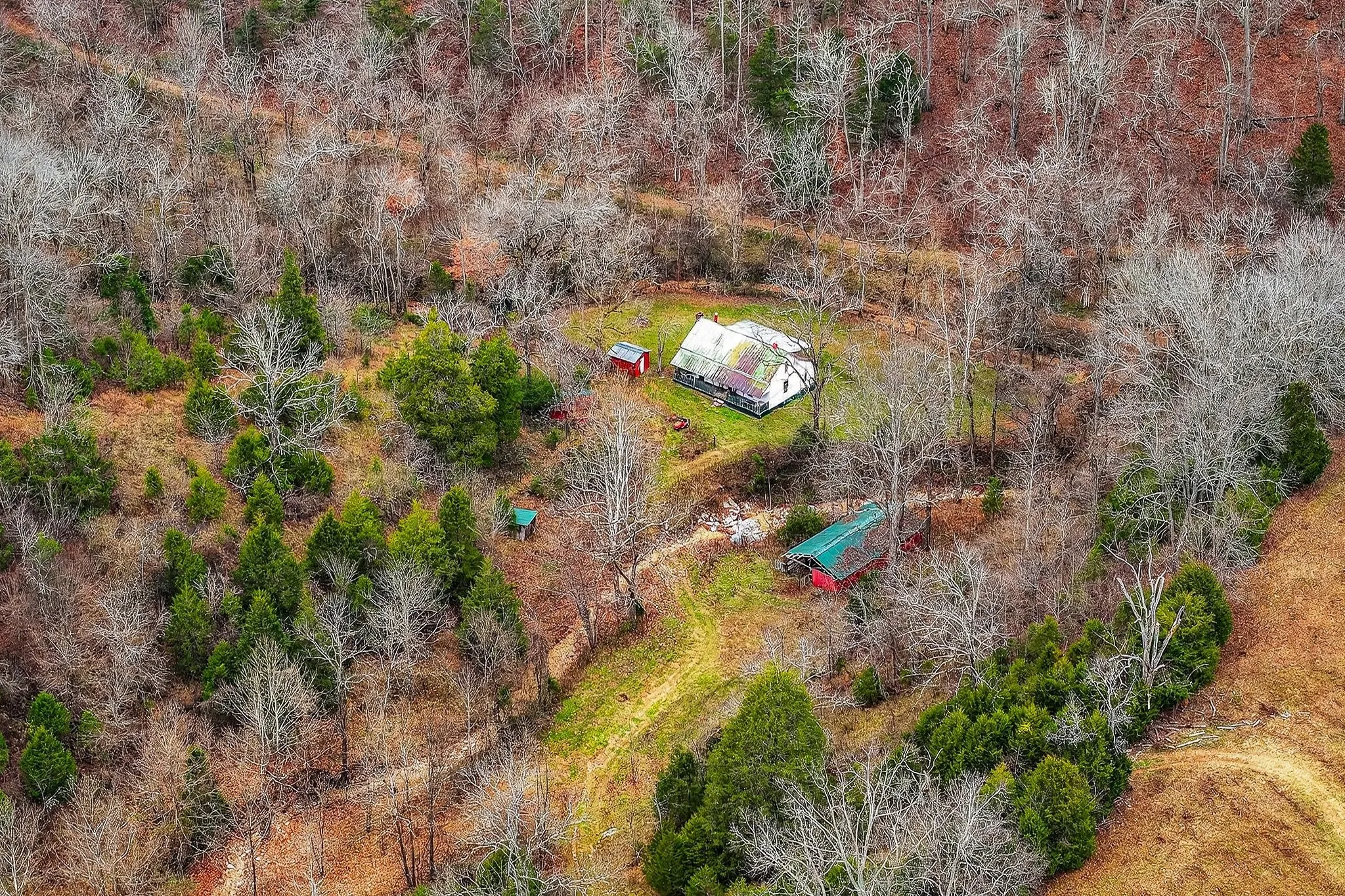 Located a short drive from Smithville, Tennessee, this century farm features a blend of open and wooded acreage with elevated ridge-top settings and long-range mountain views. Cleared ridge tops provide open ground and multiple potential building areas, while steep, timbered ridges add natural cover, privacy, and a classic Middle Tennessee mountain character. Several building sites are positioned to capitalize on the terrain and views, offering options for a primary residence, weekend cabin, or recreation-focused retreat.