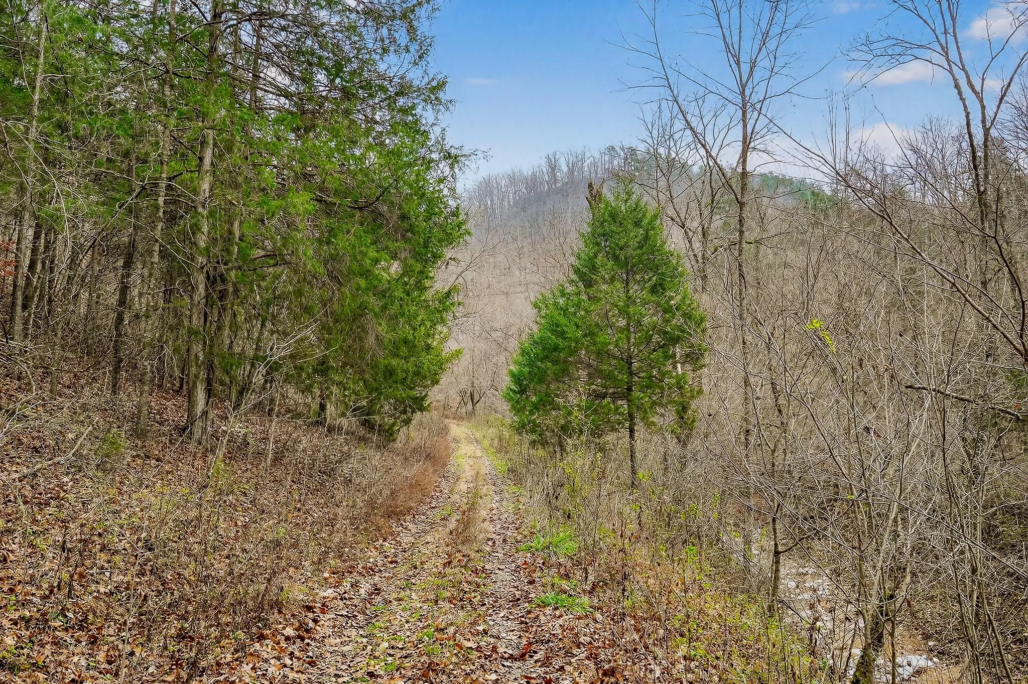 The property supports abundant wildlife, including deer and turkeys. The steep terrain forms natural funnels, benches, and travel corridors, while timbered slopes, edge cover, and bedding areas create quality habitat. Several locations are suitable for adding food plots to further enhance attraction and management options. A freshwater spring provides a natural year-round water source, and the steep ridges offer strong conditions for timber growth. Mature trees across the wooded ridges add long-term value and appeal.