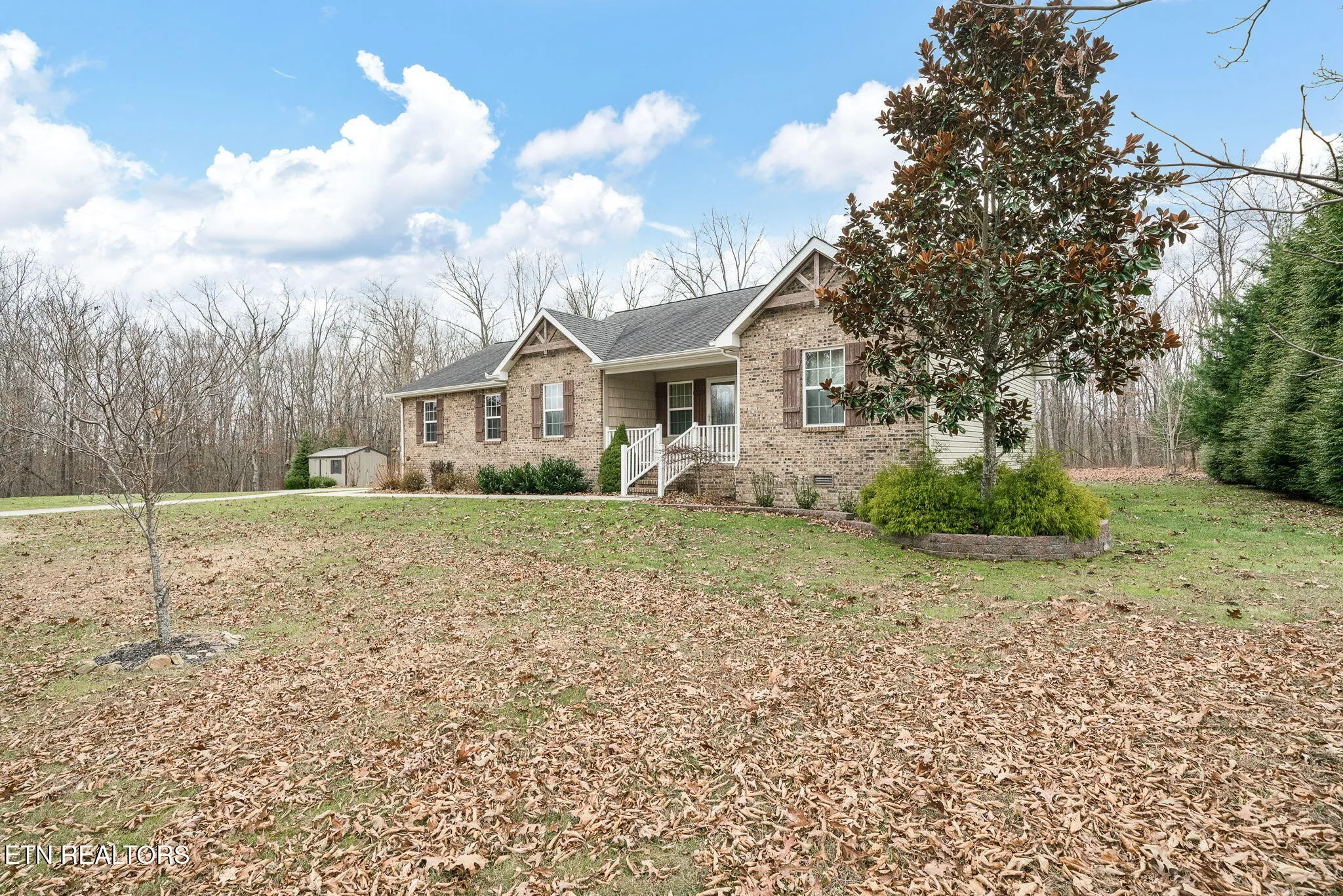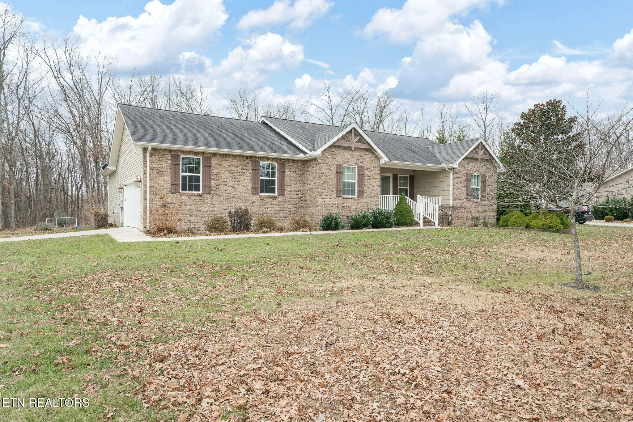 • Attractive brick front with vinyl cedar shake accents