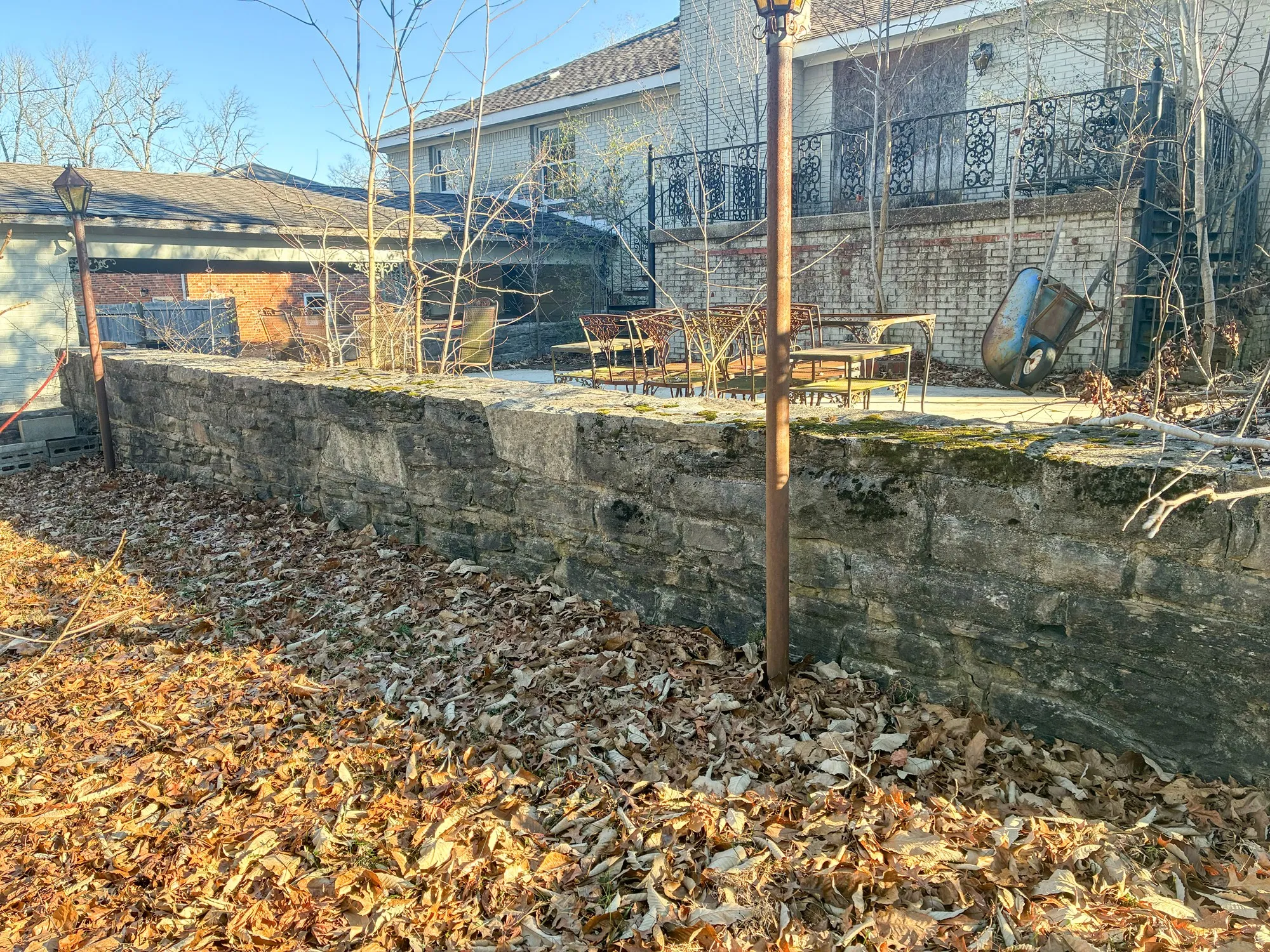 The property features 125×206 lot with mature trees. The home has hardwood floors, a beautiful patio area with stone work, 2 car garage, and carport with storage. Home is in need of extensive repairs and updates.