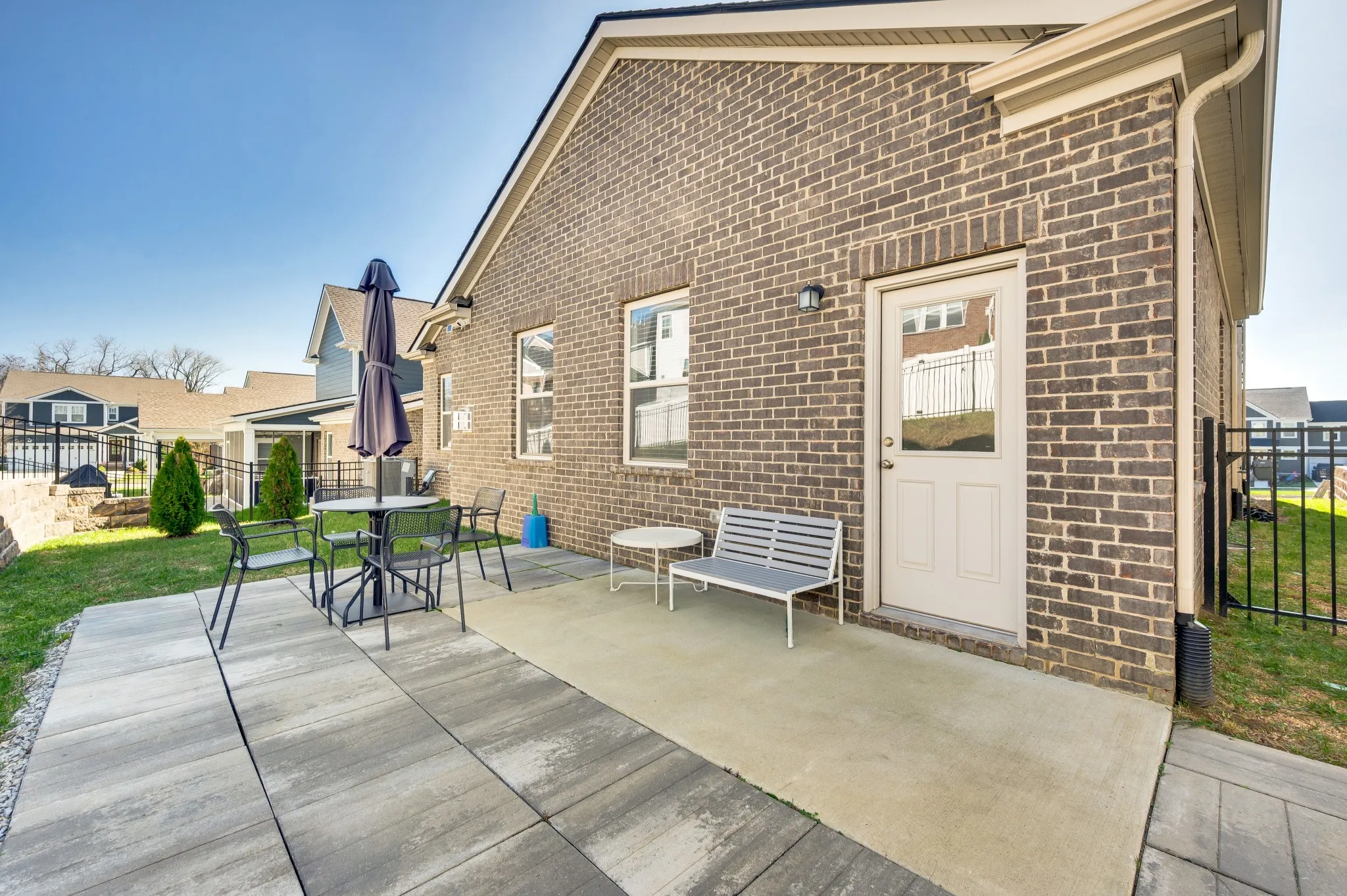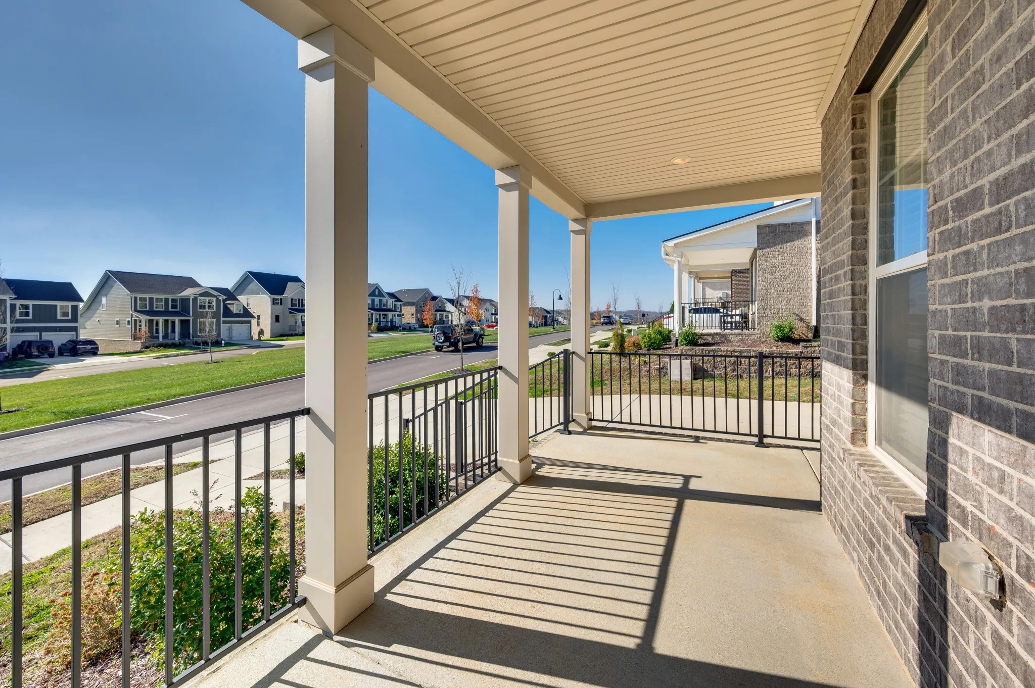 Like-new, two-story brick home in the highly sought after Durham farms! built in 2023 offering 2,564 sq ft of thoughtfully designed living space. Welcoming covered front porch opens to a long foyer and a front room ideal for a home office or study. The main level features a convenient half bath and an open-concept living, dining, and kitchen area highlighted by soaring cathedral ceilings. The kitchen showcases white cabinetry, sleek countertops, subway tile backsplash, stainless steel appliances, and a large island with sink, dishwasher, and barstool seating. The spacious living room centers around a cozy corner gas fireplace, while the dining area easily accommodates a 6–8 person table and opens to the back patio for effortless indoor/outdoor entertaining. The main-level primary suite offers plush carpet, tray ceiling, and a wall of windows for abundant natural light, plus a spa-like bath with a huge walk-in tile shower and transom window, as well as a walk-in closet. Upstairs features a generous bonus room perfect for entertaining, along with three additional bedrooms—two sharing a full bathroom and one with its own full bath with tub/shower combo. Upstairs laundry includes a utility sink and cabinet storage. Fully fenced with a paved backyard ideal for outdoor relaxing. Two-car attached front-entry garage. Enjoy fantastic community amenities including a clubhouse, pool, playground, and dog park. Located in desirable Hendersonville—this move-in ready home truly has it all.