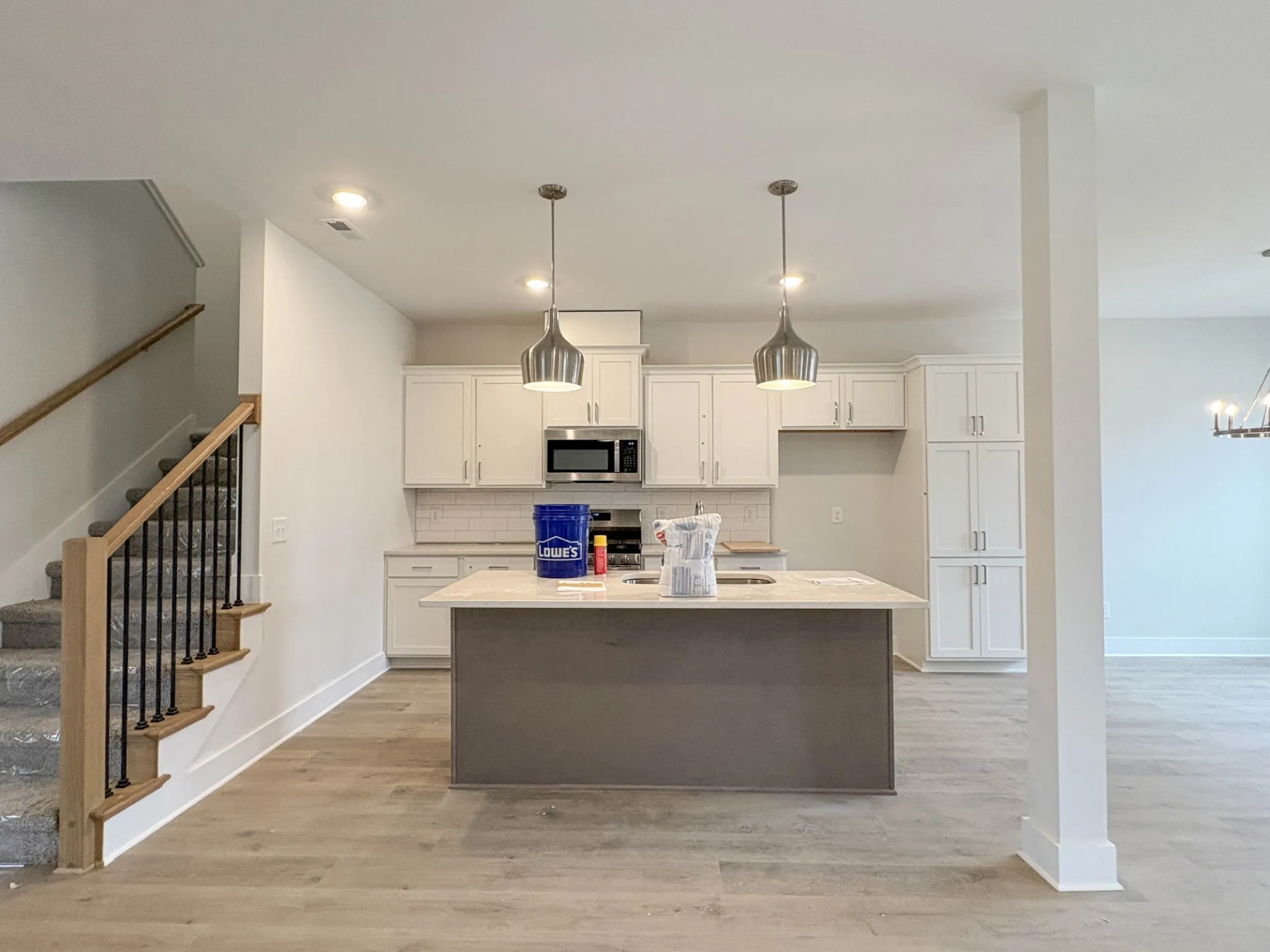 Charming and versatile, this 3-bed, 2-bath, 1,967 sq ft all-brick home in The Paddock at Kennesaw Farms offers thoughtful design and upgraded finishes. The kitchen features quartz countertops, designer tile backsplash, upgraded cabinetry, and stainless appliances, opening to a dining area and spacious living room with a gas fireplace. Durable laminate flooring enhances the main level, while plush carpet adds comfort upstairs and tile accents each bath. The primary suite includes a soaking tub, tiled shower, and dual vanities, while two additional bedrooms and a rec room provide flexible living options. A rear-entry 2-car garage, neutral paint, and upgraded finishes complete the home. Residents of The Paddock enjoy neighborhood charm, green space, and a convenient location near Station Camp schools, shopping, and commuter routes. HOA includes lawn maintenance and sprinklers for low-maintenance living. Ask about our builder incentives!