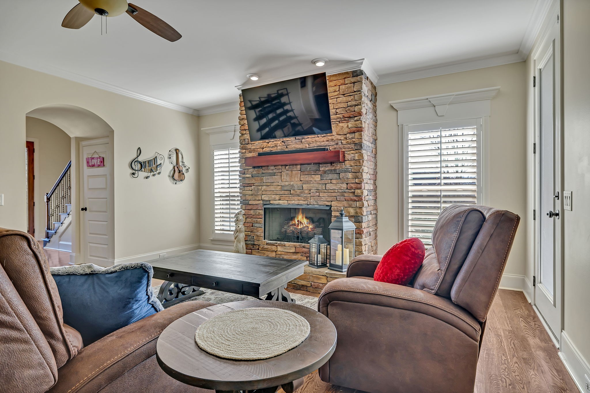 Welcome to one of the largest homes in the sought-after Stonehollow neighborhood! This gorgeous house features an open concept living area with all new interior paint, a newly stoned fireplace surround, and a smart home system including security, garage control, and smart thermostats. The kitchen has a beautiful tile backsplash and the primary suite includes a tray ceiling, an en-suite bathroom with a tile shower, separate tub, double vanities, and a custom walk in closet! The garage has a new epoxy floor and paint. Upstairs you’ll find a second suite and a large bonus room, perfect for entertaining! Off of the living room and primary suite, you’ll find a screened in porch that leads to a patio with a stone fireplace and pergola. Positioned directly across from the clubhouse, residents enjoy easy access to amenities and guest parking. Don’t miss out on a beautiful home conveniently located near highly rated schools, shopping, dining, interstate 40 and downtown Nashville!