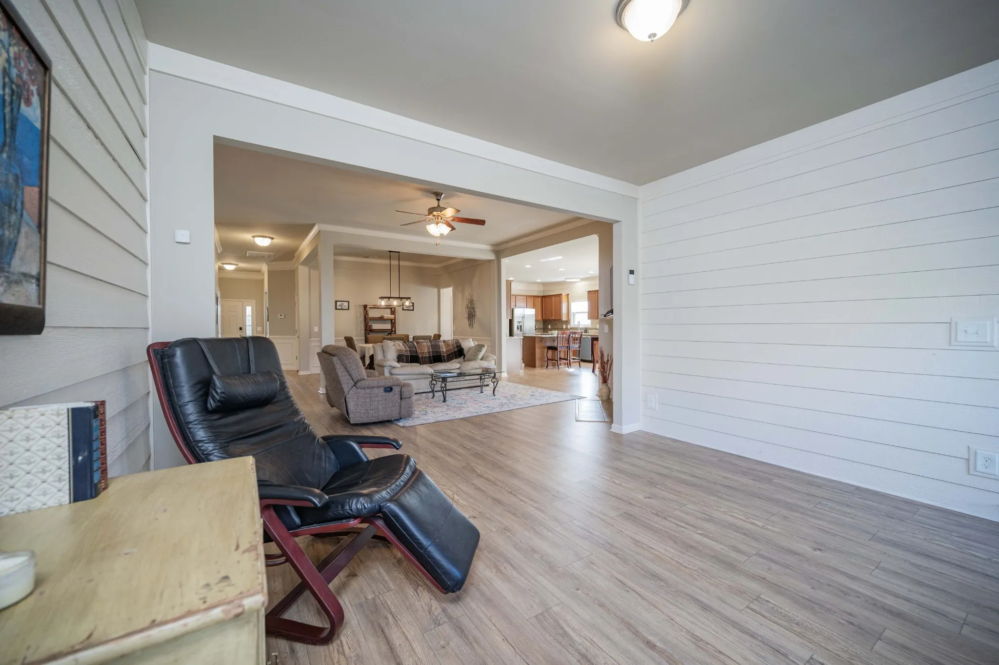 Beautiful 1 level home that has lots of room & a bonus up! Living, Dining & Florida Rooms, 4 Bedrooms, 3 Baths, Office/Study. Large Kitchen features 26 Full Size Cabinets with 10 Drawers, Large Island & Granite Countertops. 10′ Ceilings, New Pergo Laminate Flooring & Tile. Step-In Tub in Primary Bath. Fenced in Back Yard. Community Pool. Upgraded energy efficient windows & HVAC. Quiet end of street. Under $200/SF for 1 level Ranch Plan! Below comp for same floorplan that sold for $560K, 1 month prior on busy street. All Siegel Schools! Per HOA, no rentals.