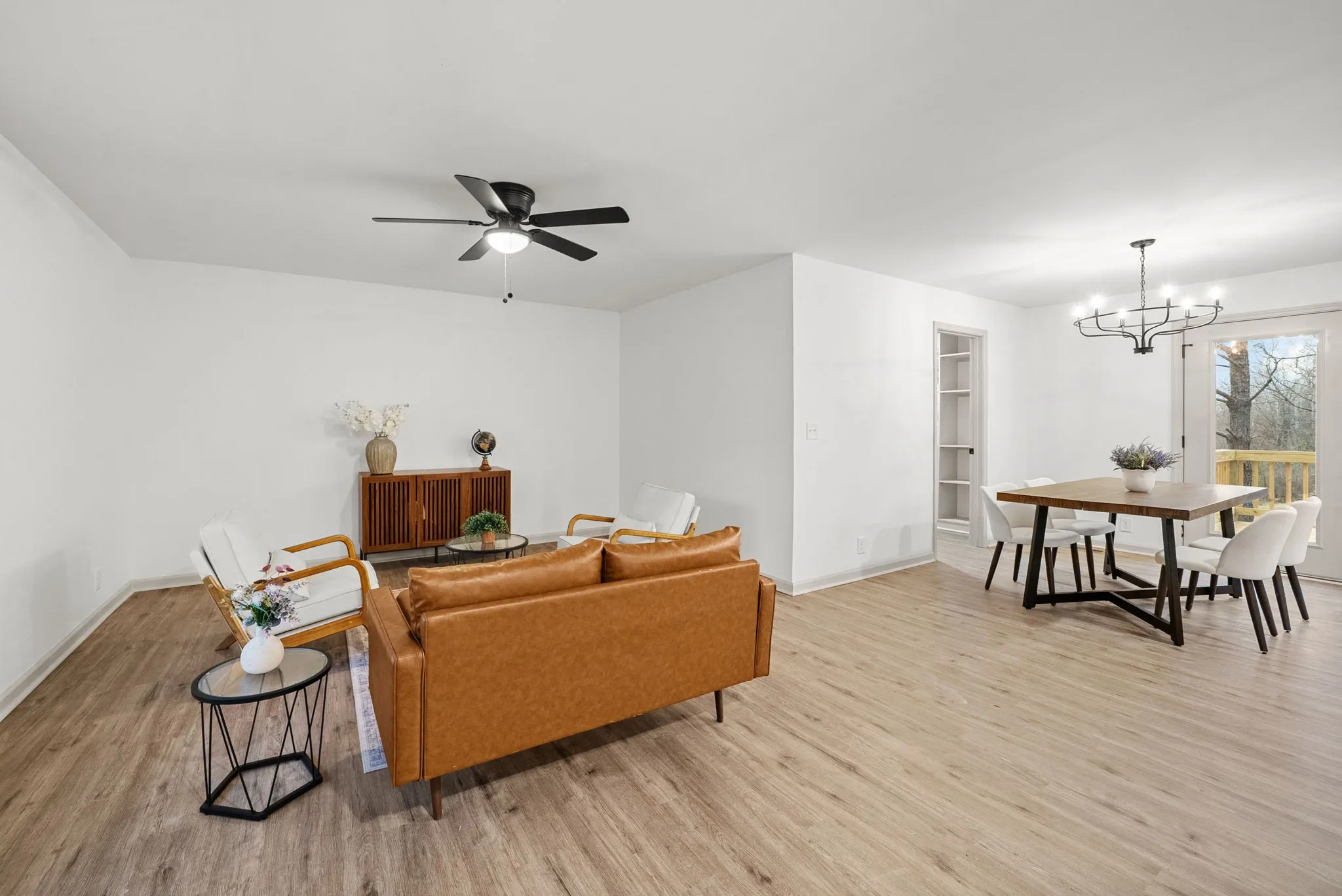 Completely renovated and move-in ready, this stunning home offers modern style and peaceful living on 3 gorgeous acres! Inside, large windows provide ample natural light throughout! The home flows seamlessly through the large living room to the open concept dining/kitchen area. In the kitchen, you’ll find beautiful quartz countertops, fashionable cabinetry, modern finishes, and a generously sized pantry—perfect for storage and organization.The primary bedroom has abundant space and includes a oversized closet with custom shelving and a bathroom with a sleek stand-up tile shower and a double vanity sink!