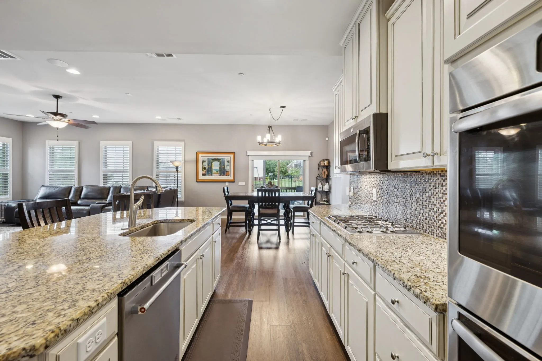 Welcome to 8013 Brookpark Ave – a beautifully maintained 3 bedroom home with 2.5 bathrooms located in the heart of the desirable Stream Valley neighborhood.This two-story home blends timeless charm with modern conveniences across approximately 2,646 square feet of thoughtfully designed living space. Step inside to discover a bright, open-concept layout featuring hardwood LVT floors, high ceilings, and abundant natural light with plantation shutters on all windows. The formal dining room was converted to an office space with decorative barn door. The gourmet kitchen is a standout, complete with granite countertops, stainless steel appliances, gas cooktop, double ovens a new dishwasher, and a large island that’s perfect for gathering. The kitchen flows seamlessly into the spacious living and dining areas—ideal for both entertaining and everyday life. The main-level primary suite offers a peaceful retreat with a spa-like ensuite bath and large walk-in closet with custom organizational system. Two more bedrooms on the main level contain extra large closets with organizational systems and flank a full bath. Upstairs is a nook perfect for games or reading and a large bonus room currently serving as a 4th bedroom with double closets and a half-bath. A large walk-in storage area with shelving completes the second floor.
