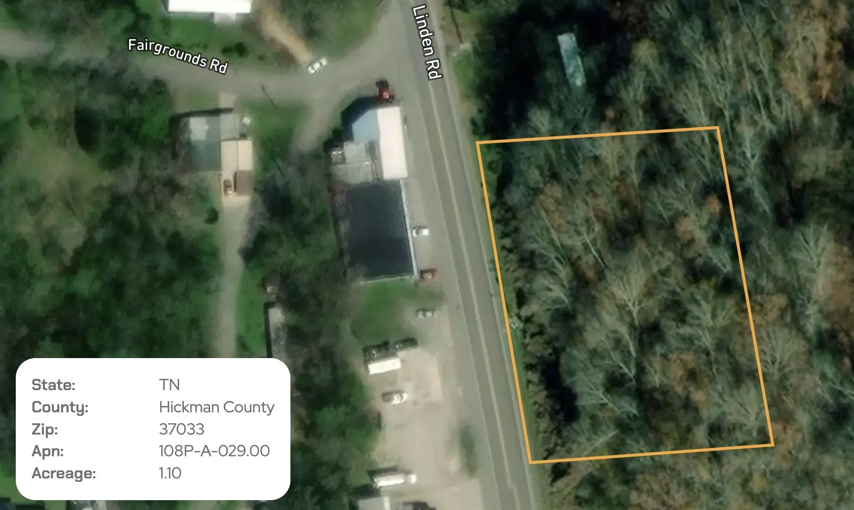 - Directions: From Nashville, take I-40 West toward Dickson. Take exit for TN-100 West (Linden Hwy) and continue toward Linden. Property is located along Linden Highway (TN-100) in Hickman County. Look for signage.