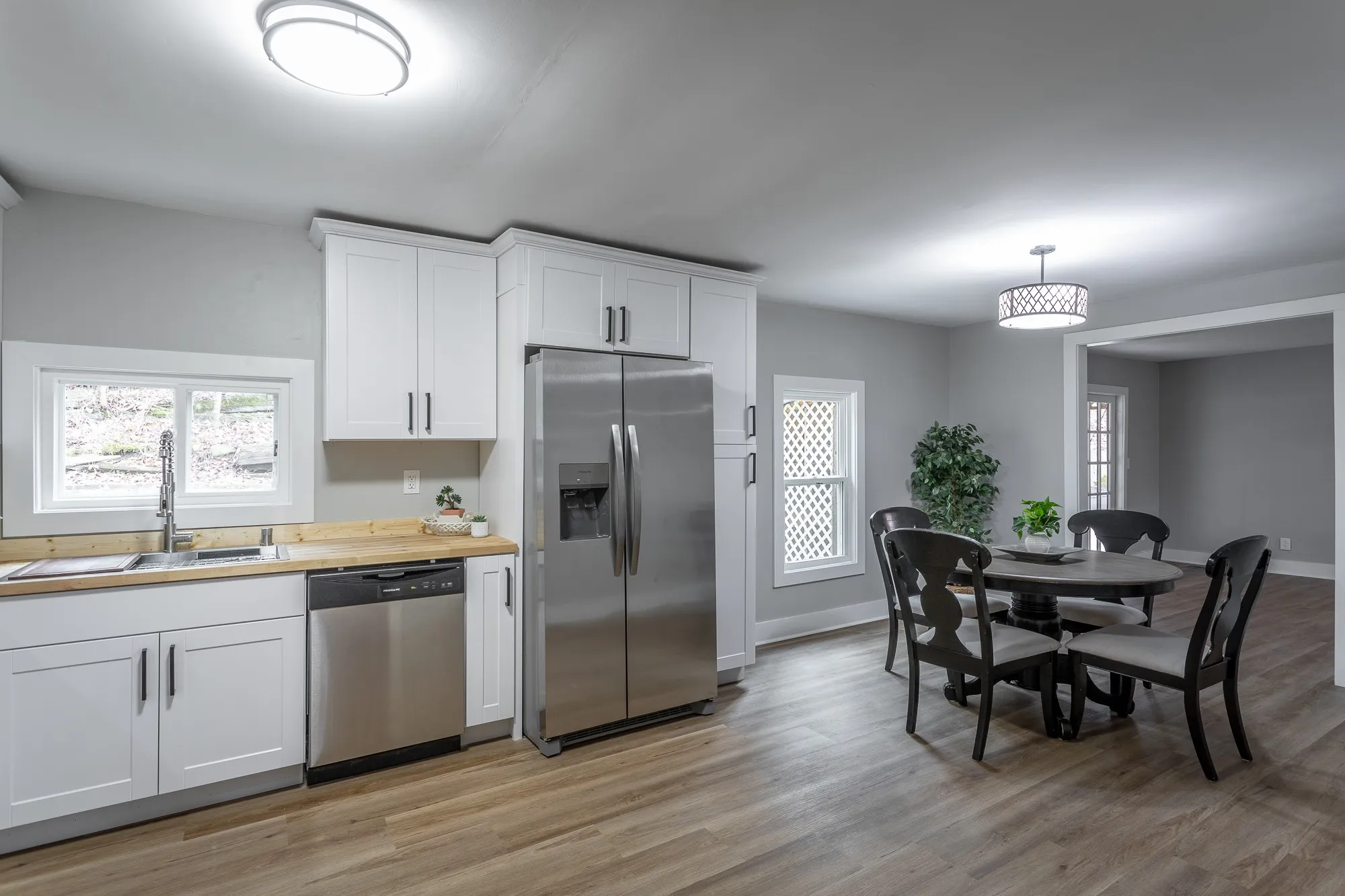 An unbeatable opportunity for value and versatility! This fully refreshed home has been upgraded with new roofing, gutters, plumbing, windows, attic insulation, trim, interior doors, fresh paint inside and out, brand-new flooring, and a welcoming new front deck — giving you peace of mind and modern appeal from day one. The updated kitchen features new appliances and finishes, while both bathrooms offer new vanities and stylish updates. What truly sets this property apart is the additional living space with its own private entrance — complete with a second kitchen, a bedroom, and a full bath. Whether you’re looking to offset your mortgage with rental income, create a private suite for extended family, or establish a comfortable guest space, this layout serves multiple income-producing or multigenerational living needs. With major improvements already completed and income potential built right in, this home delivers exceptional value at this price point. Move-in ready, smartly updated, and full of opportunity — come unlock the possibilities! Buyer to verify all information and uses.