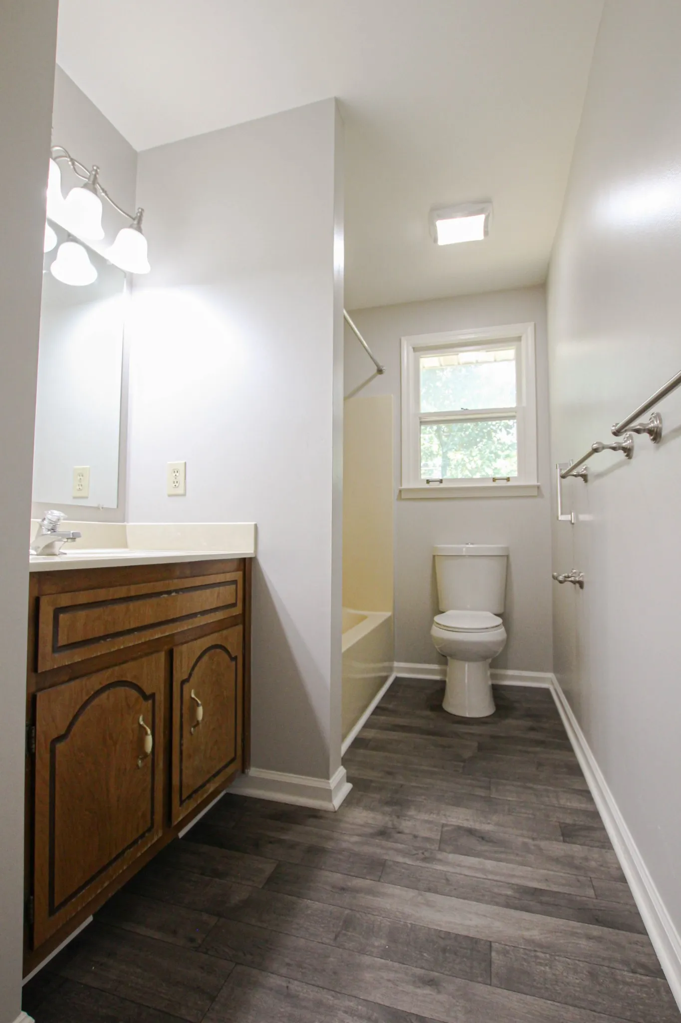 Great three bedroom, one and a half bath home sitting on large unfinished basement! Spacious living room, large eat in kitchen, primary suite with private bath, two generously sized guest rooms, and great outdoor space with covered patio and tons of additional parking! Pet rent applicable.