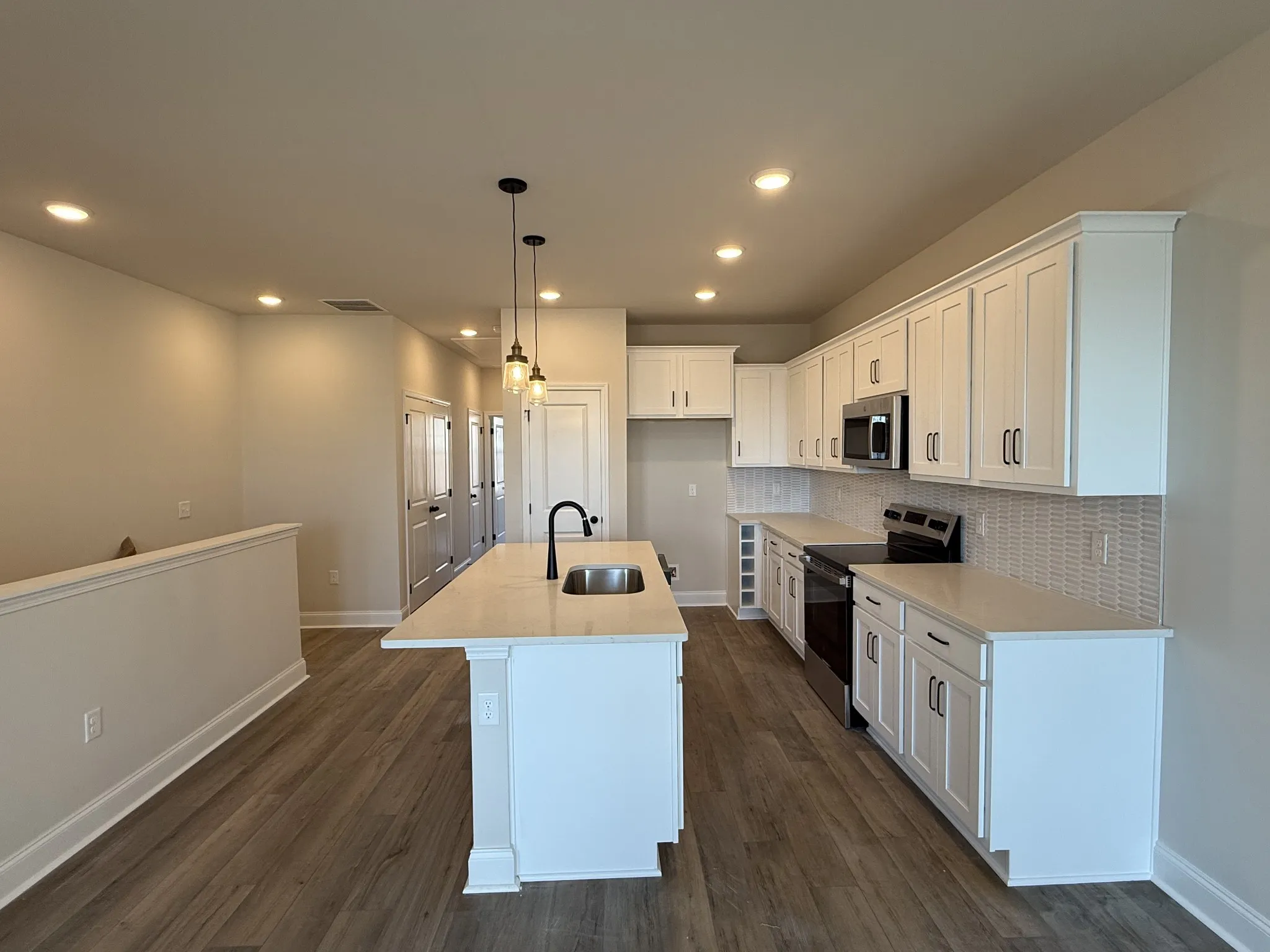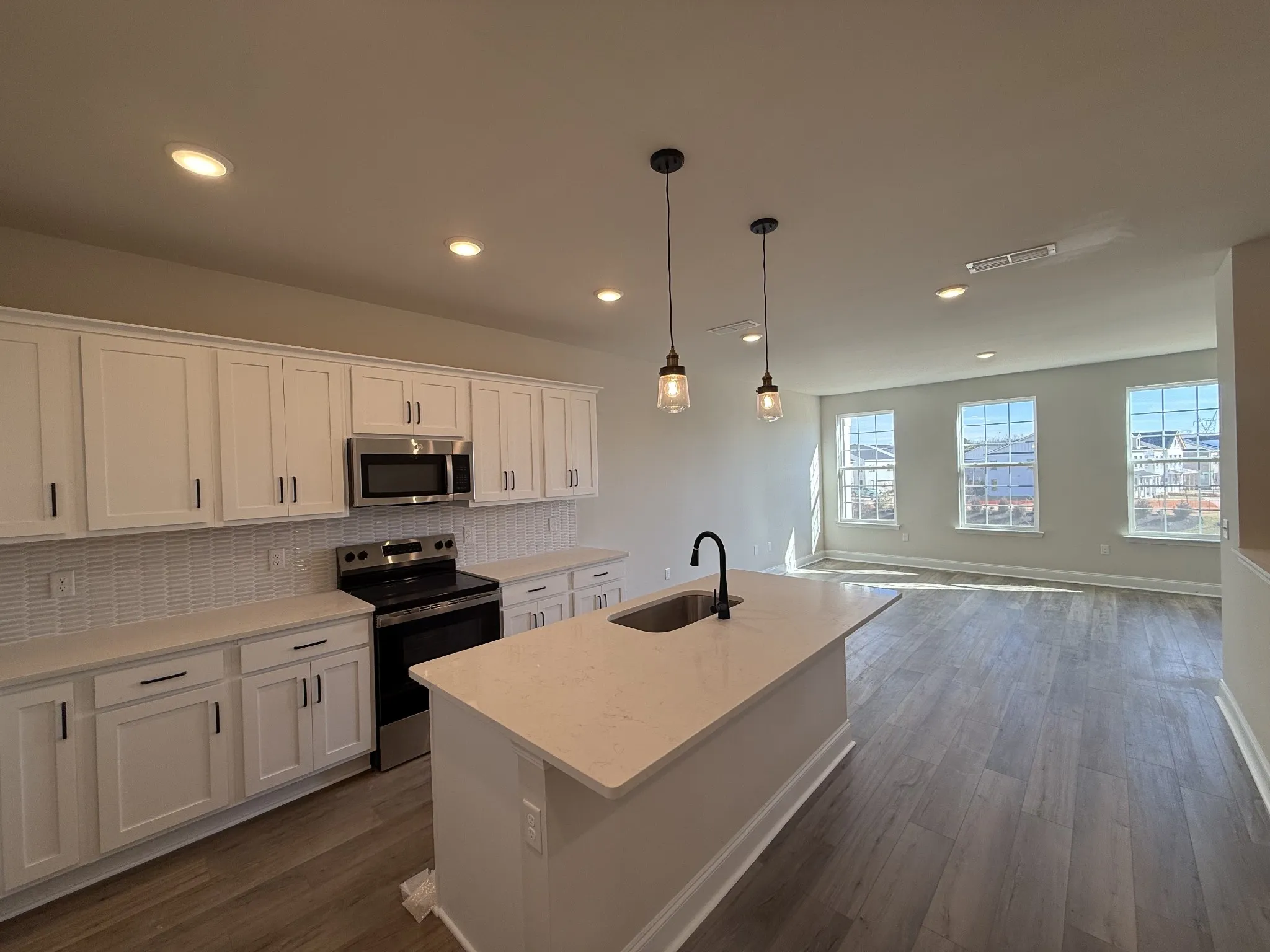 Featuring 2 Bedrooms, 2.5 Baths with a dedicated study, this townhome provides flexible space ideal for working from home, hobbies, or a bonus room. The open-concept layout seamlessly connects the living, dining, and kitchen areas, creating an inviting atmosphere for entertaining or relaxing. Impeccable finishes and thoughtful details throughout showcase exceptional craftsmanship and timeless style. Professionally curated with our Harmony Collection, this elegant townhouse offers white soft-close cabinetry, quartz countertops, and a timeless white mosaic backsplash. The primary bathroom includes dual quartz vanities, tile flooring, and a fully tiled shower. Luxury vinyl plank flooring flows seamlessly through the main living areas on the first and second floors, accented by hardwood stairs for a polished finish.