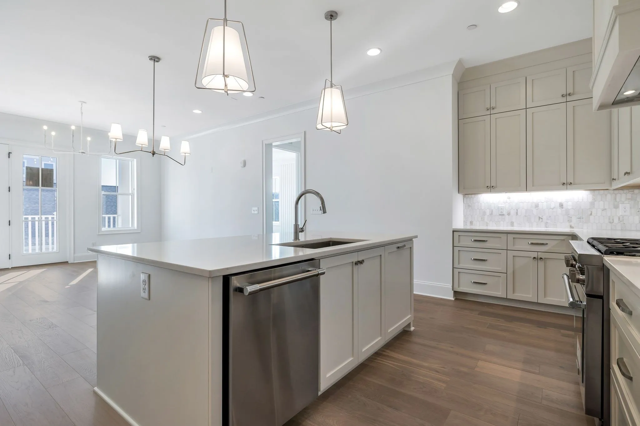 NEW ~READY NOW~ Ford Classic Homes~ One Level Condo~ Lock and Leave Living w/ Luxurious Finishes~ 10′ ceiling heights~ 7.5″ pre-finished hardwood flooring~ Stainless appliances w/ Thermador 36″ gas range, painted wood kitchen cabinetry extended to ceiling w/ soft close doors and drawers~ centrally located in the Town Center of Westhaven~ Walk to shops and restaurants.