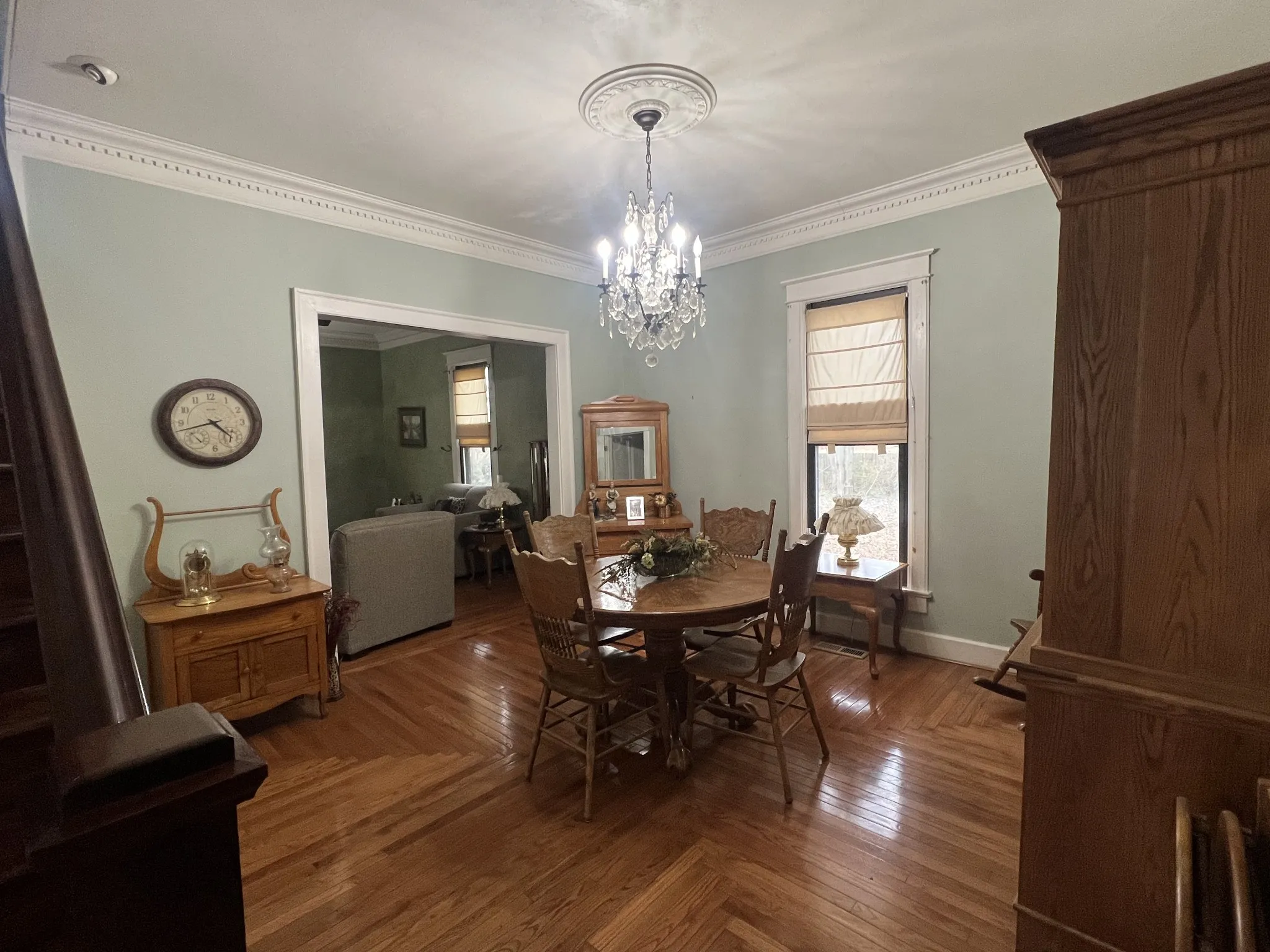 Historic home featuring hardwood floors, high ceilings, crown molding, granite countertops, and a tiled backsplash. This 3-bedroom, 1-bath property offers character throughout, including built-in living room cabinets perfect for displaying collectibles. The upstairs bedroom is smaller and would also make a great home office. The room upstairs has 2 closets. Gather around the fireplace on chilly evenings for cozy movie nights with the family. A 16×30 shop/garage provides ideal space for a woodworker, mechanic, or crafter. Large shade trees surround the home, offering added privacy. Conveniently located just minutes from I-65, Gallatin, and Franklin, KY.