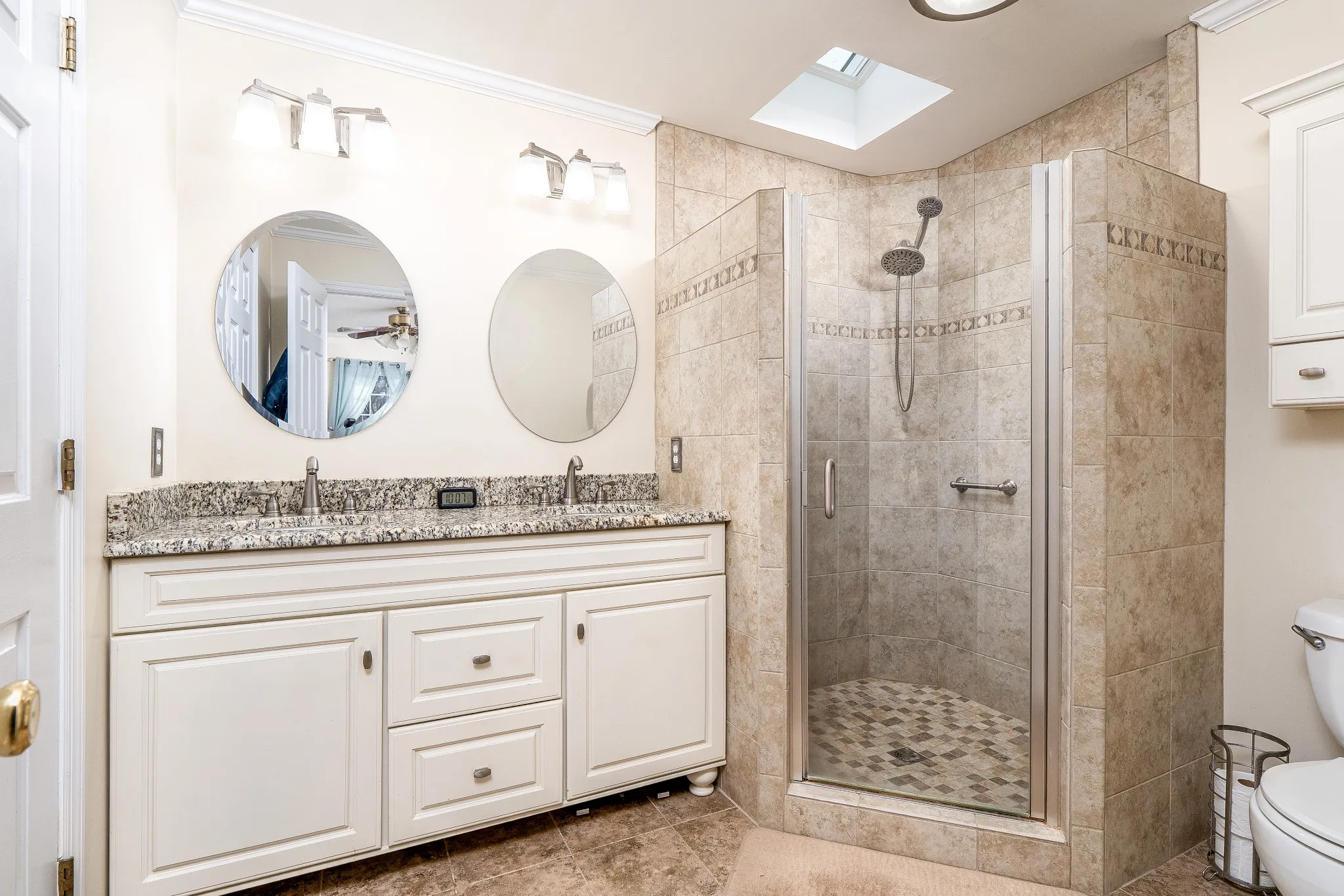 The kitchen was beautifully remodeled in 2021 with new cabinetry, quartz countertops, and stainless steel appliances. New carpet has been installed in all three bedrooms, and all three bathrooms have been completely renovated, boasting new cabinets, countertops, updated flooring, a walk-in shower, and a bathtub.