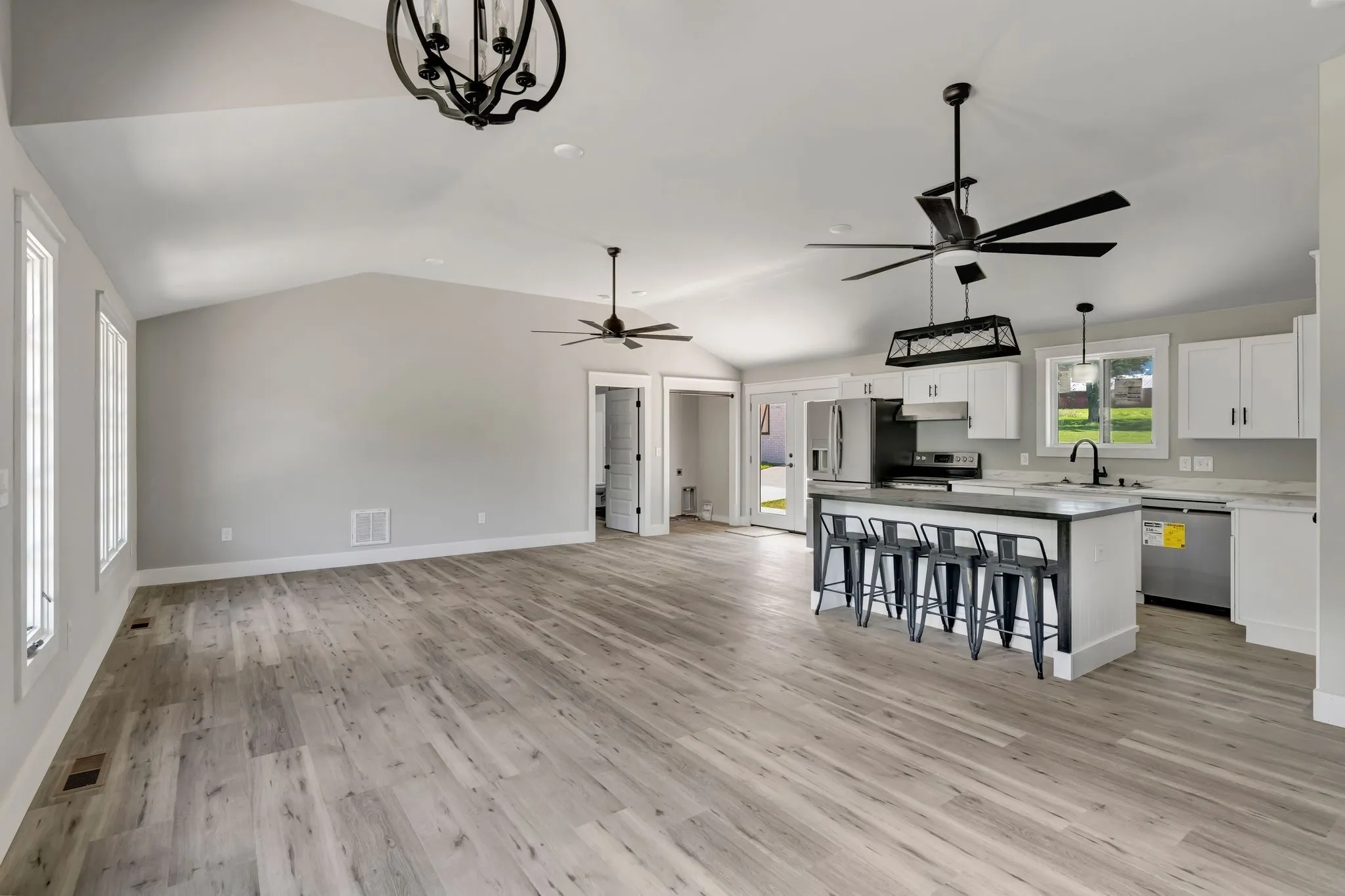 This stunning ranch-style home has been completely renovated from the studs out, offering modern comfort with timeless charm. Featuring an open-concept floor plan, the kitchen, dining area, and great room seamlessly flow together, creating an ideal space for both everyday living and entertaining.