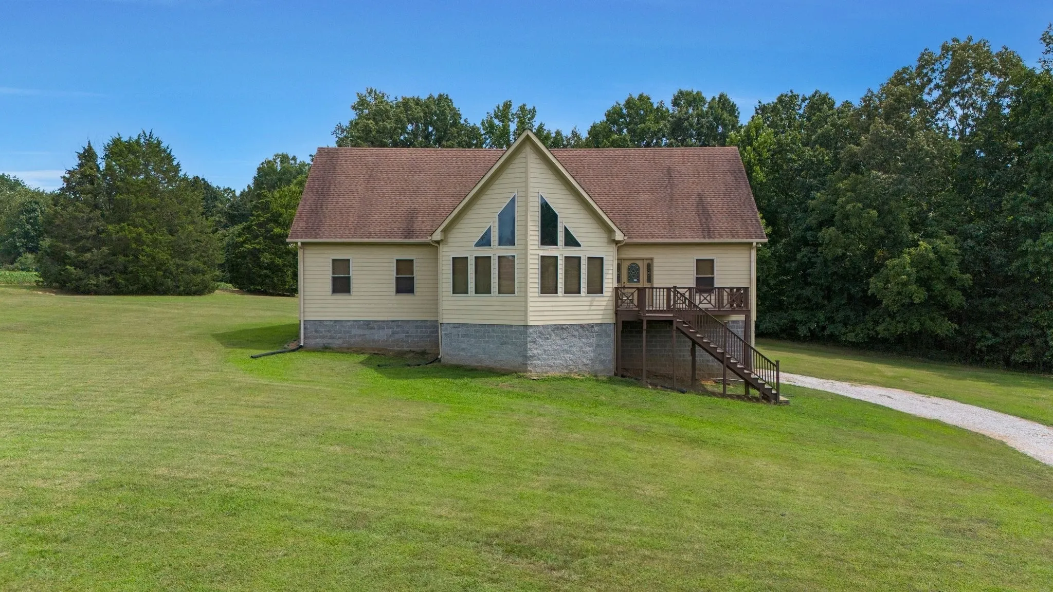 Large deck overlooks tranquil acreage with abundant wildlife. Property includes wooded areas, a creek at the back, and open space suitable for shooting or recreational use. A perfect country setting with room to roam.