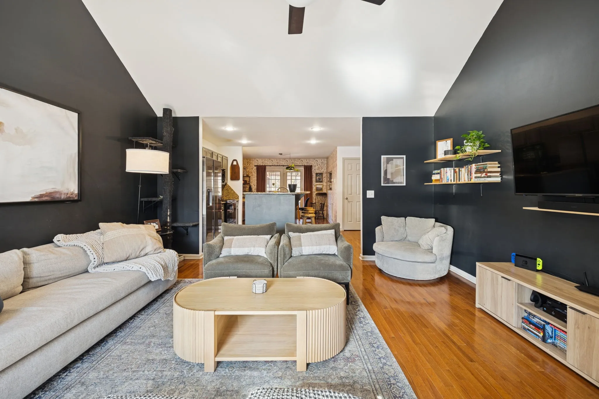 Interior Features Open Floorplan, High Ceilings, Kitchen Island, Ceiling Fan(s), Redecorated, Air Filter