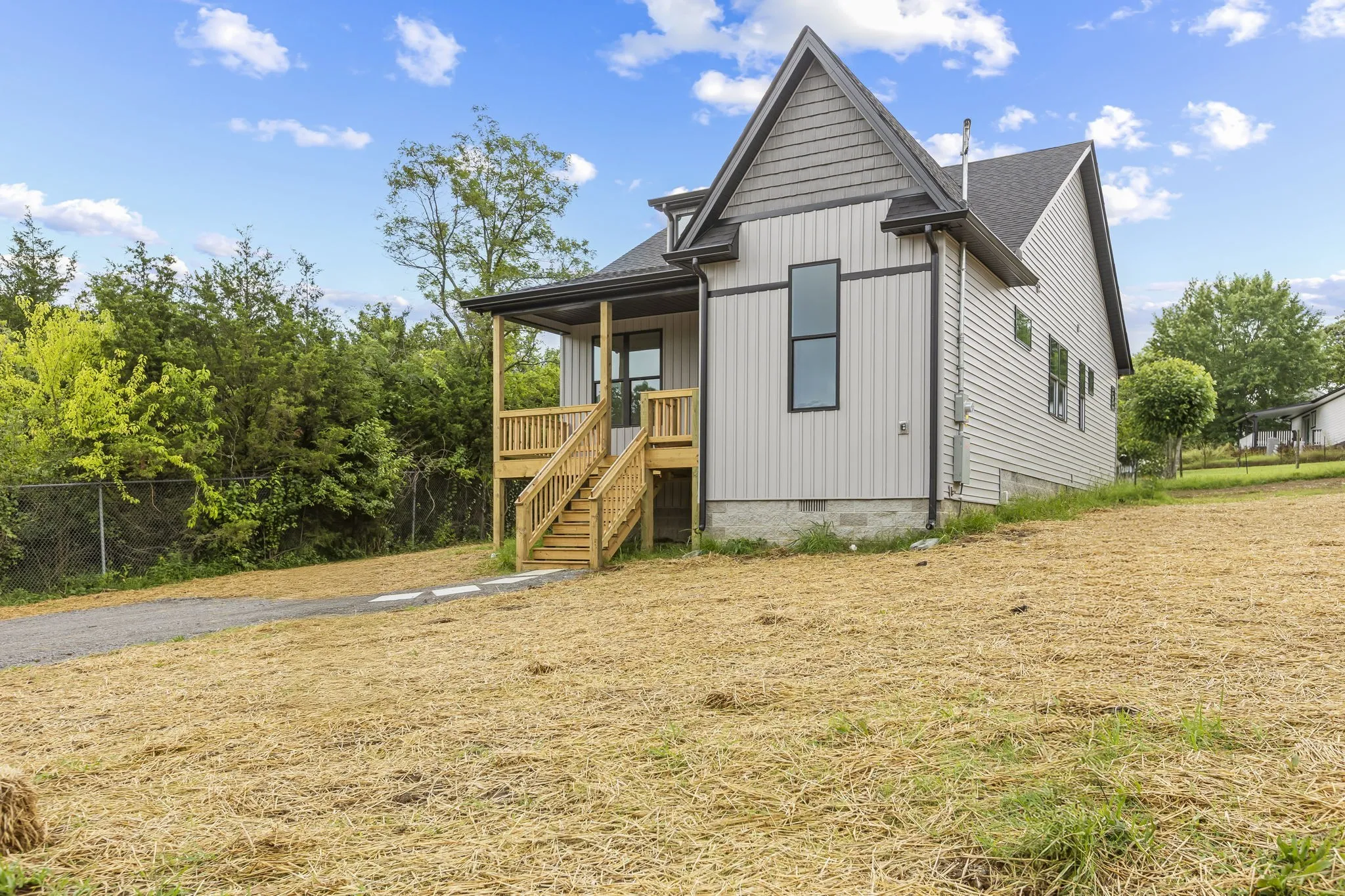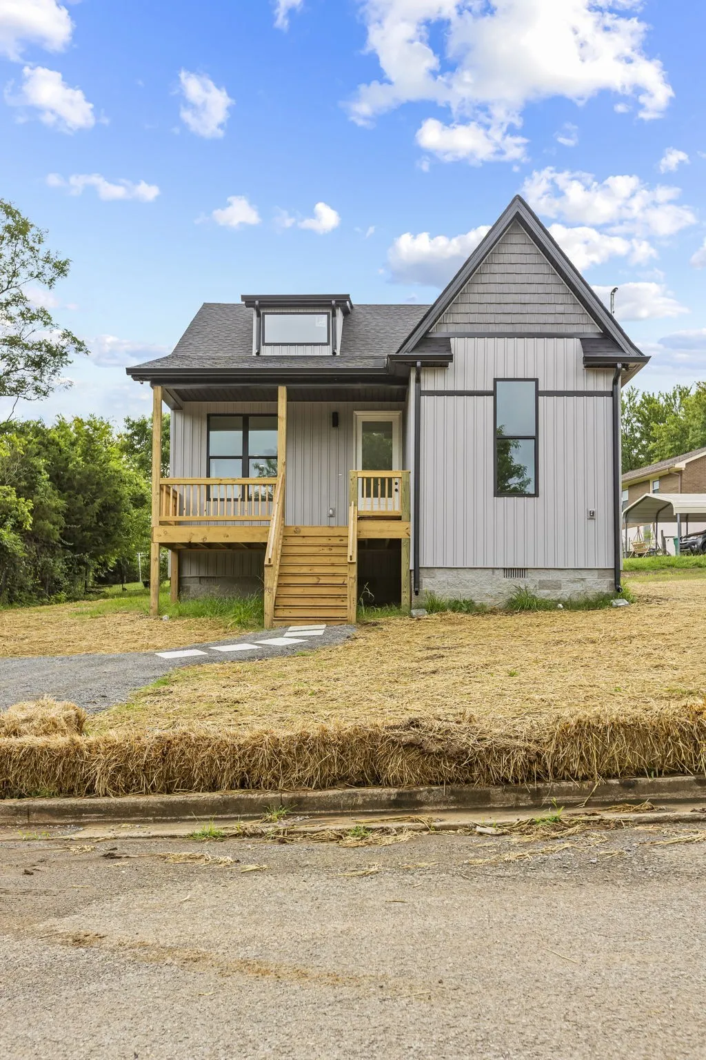 Incentive: Use our preferred lender and you can choose from a one year rate buy down or the lender will give a credit of .5% of the amounts financed toward your closing costs.**Not your typical cookie-cutter home!** This stunning 3 bedroom 2 bath new build offers a sleek contemporary design and thoughtful upgrades throughout. Step inside to discover soaring 9′ ceilings, 8′ exterior doors, and a vaulted ceiling with dormer windows that flood the space with natural light, creating a bright and relaxing atmosphere. The open-concept layout is perfect for entertaining, with an oversized island, tile backsplash, upgraded lighting, and a modern flow from kitchen to living. Enjoy morning coffee on the covered front porch or unwind on the back deck. Premium vinyl siding, oversized windows, and tile surround in the bathrooms add both function and style. Every detail was carefully selected for comfort, efficiency, and modern living. This move-in ready home is calling your name—don’t miss it!