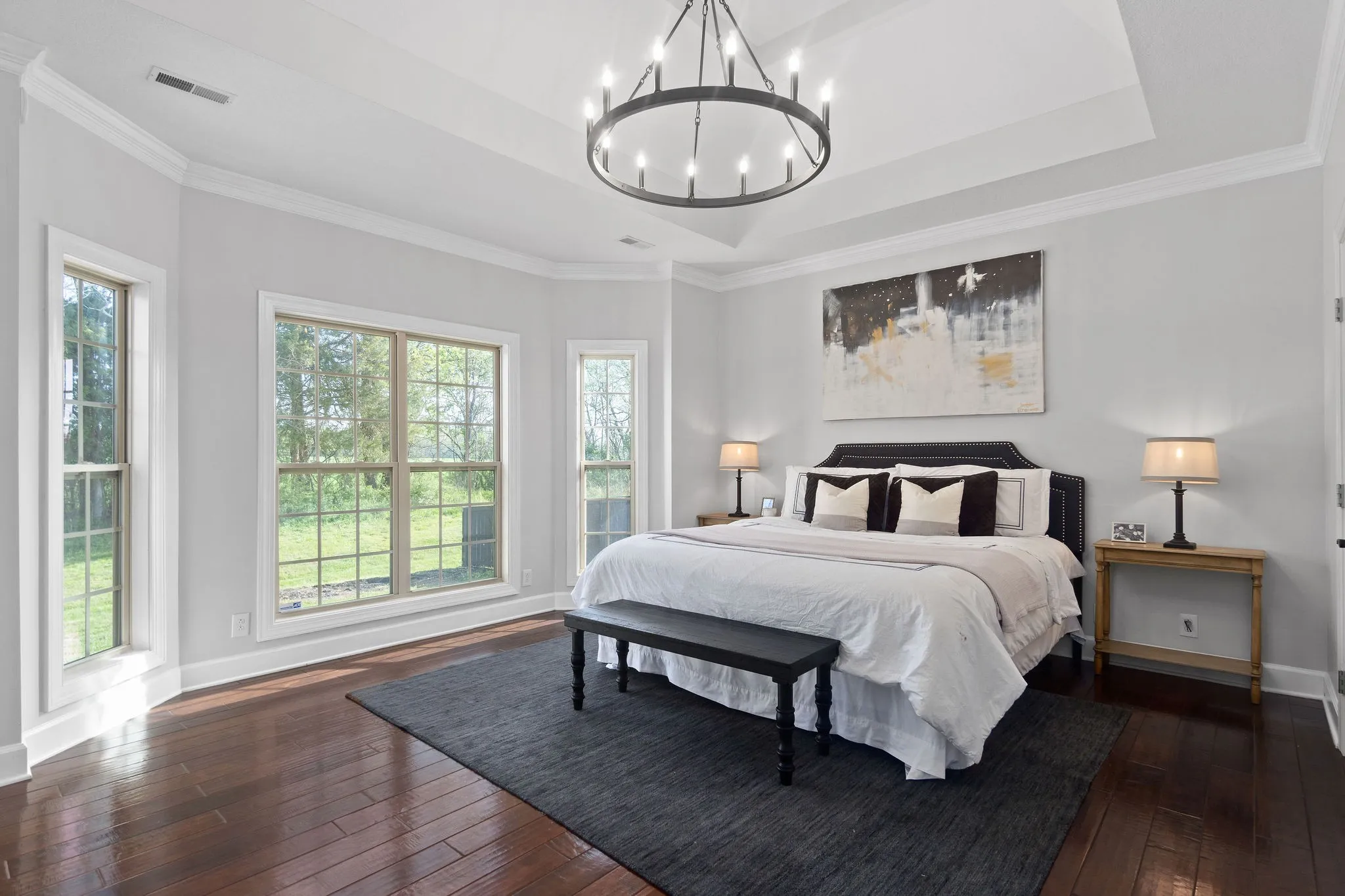 The large primary suite features a tray ceiling and bay window, filling the room with natural light. The en suite bathroom includes double vanities, a separate soaking tub, and a walk-in shower. Two additional bedrooms provide comfortable space, while the spacious bonus room offers flexibility for a home office, playroom, or media room. Encapsulated crawlspace, plus tons of attic space perfect for additional storage.