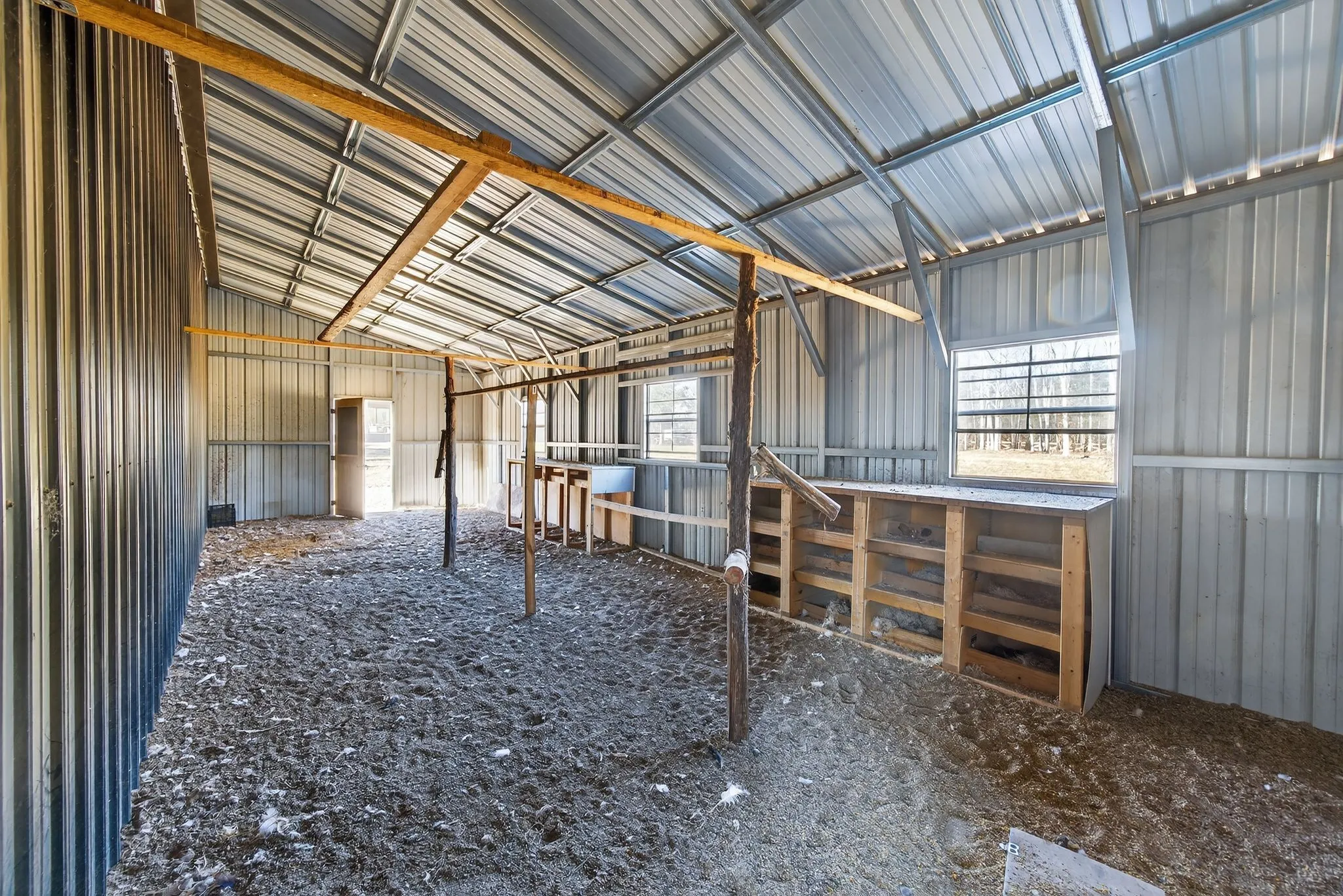 Step outside to experience the serenity of the property, where peace and quiet surround you. A large 48x45 pole barn provides space for animals, and a fenced area behind the barn makes this property ideal for those wishing to bring horses, chickens, goats, or other livestock.\n