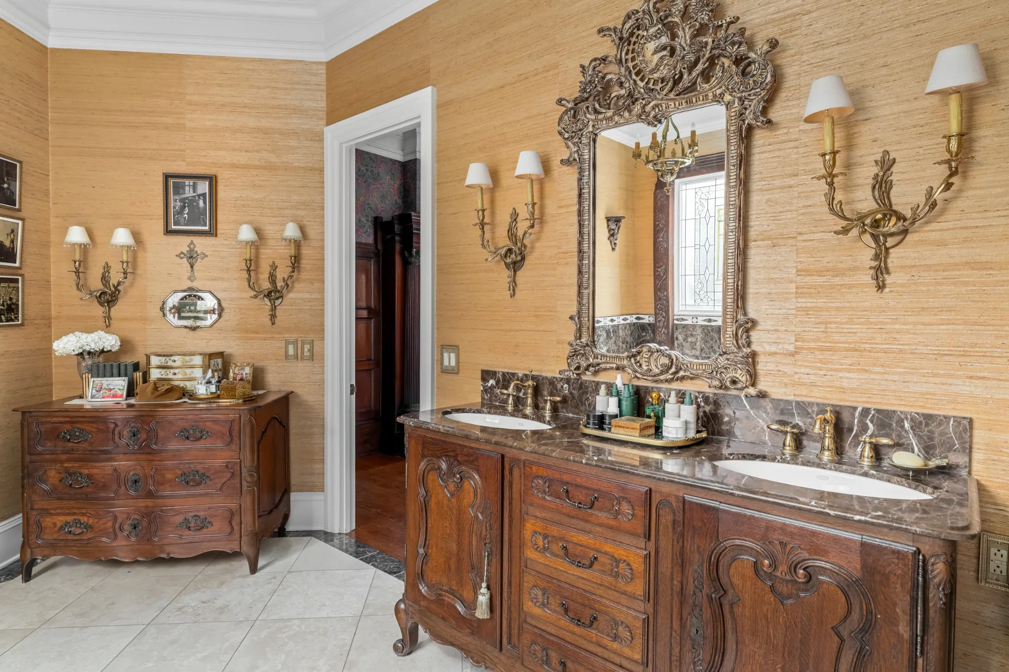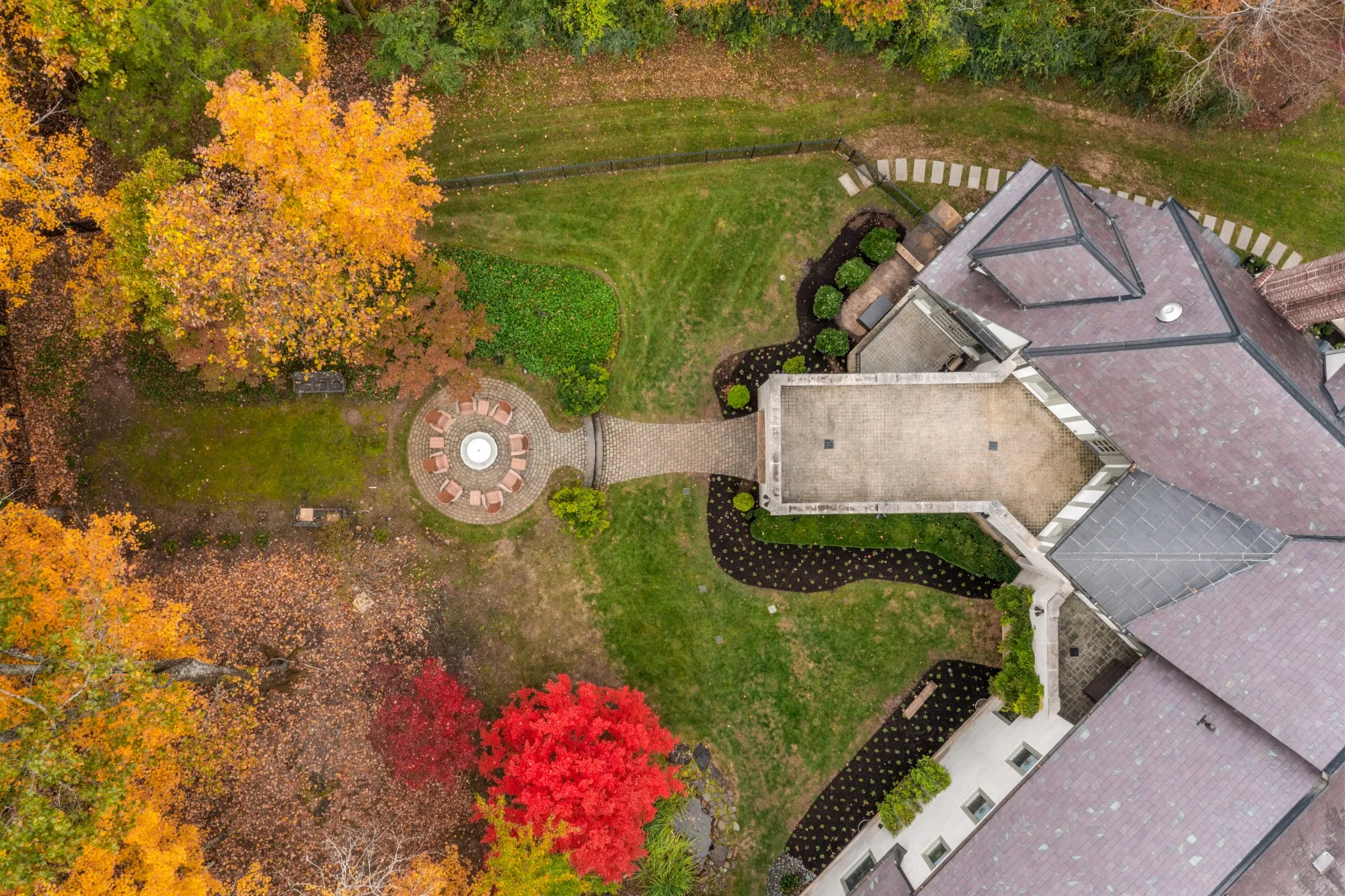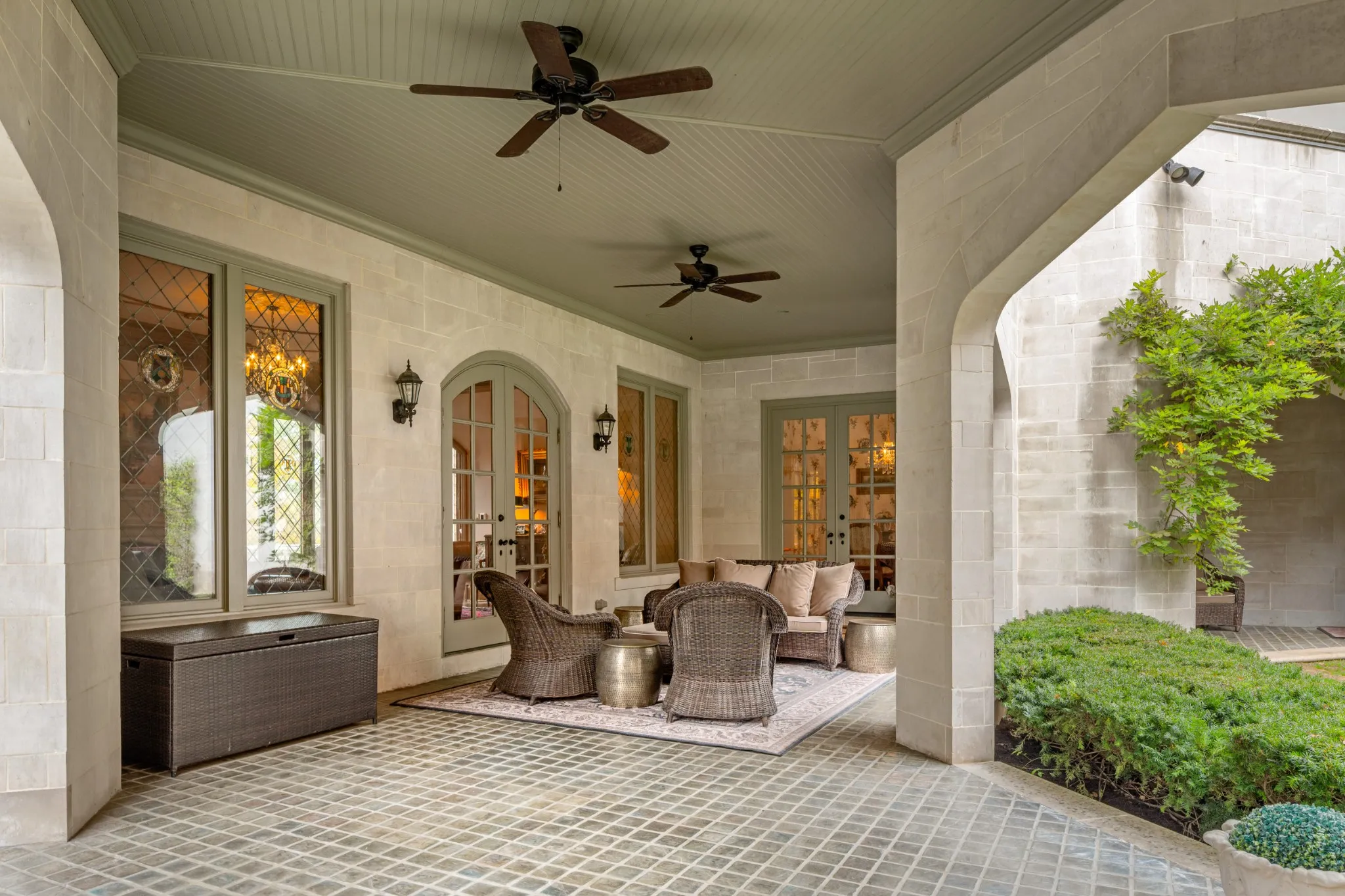 "LongDescription" => "Another English-garden inspired courtyard with covered outdoor dining. Covered breezeway that leads from the main house to the garage and office areas"
