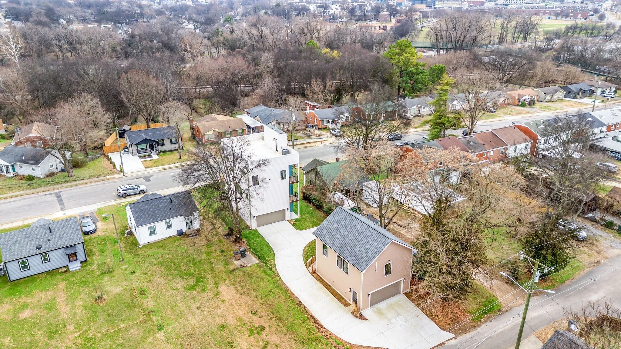 Auction, January 24th at 10:00AM. Doors will open at 9:00AM to get registered. There will be MULTIPLE PROPERTIES auctioned from Midland Rd starting at 10am, Doors open 9AM to get registered. Call for details. Auction Terms: $50,000 Down Day of Sale, Balance Due In 30 Days. Buyers must bring cashier check, or letter from bank stating the funds are good. Property Taxes: Pro-Rated, Buyer is guaranteed Clear title. A 10% Buyers Premium Will Be Added To The Final Bid Price And Made A Part Of The Purchase Price. TWO LIVING SPACES – main home PLUS a detached dwelling (DADU)!! READY FOR YOUR MULTI-GENERATIONAL NEEDS (or guest house, music studio, etc.) This BRAND NEW home is located just moments from Nashville’s world class restaurants and nightlife, yet still also provides ample peace and serenity to the homeowner. Need to entertain? This is the home for you! Enjoy views of the East Bank from your rooftop balcony and impress your guests with the incredible spa-like baths and upgraded selections installed throughout. This home offers maximum flexibility and functionality via a combined total of 4 BD, 4 1/2 BA, two kitchens and garages for up to 4 cars. How will you use the space? Located just steps from the exciting new East Bank Development and Titans’ Stadium, and within walking distance to local favorites like Red Headed Stranger, Turkey and Wolf, Folk, and Audrey. The dimensions of the DADU are incorporated into the total square footage for the listing